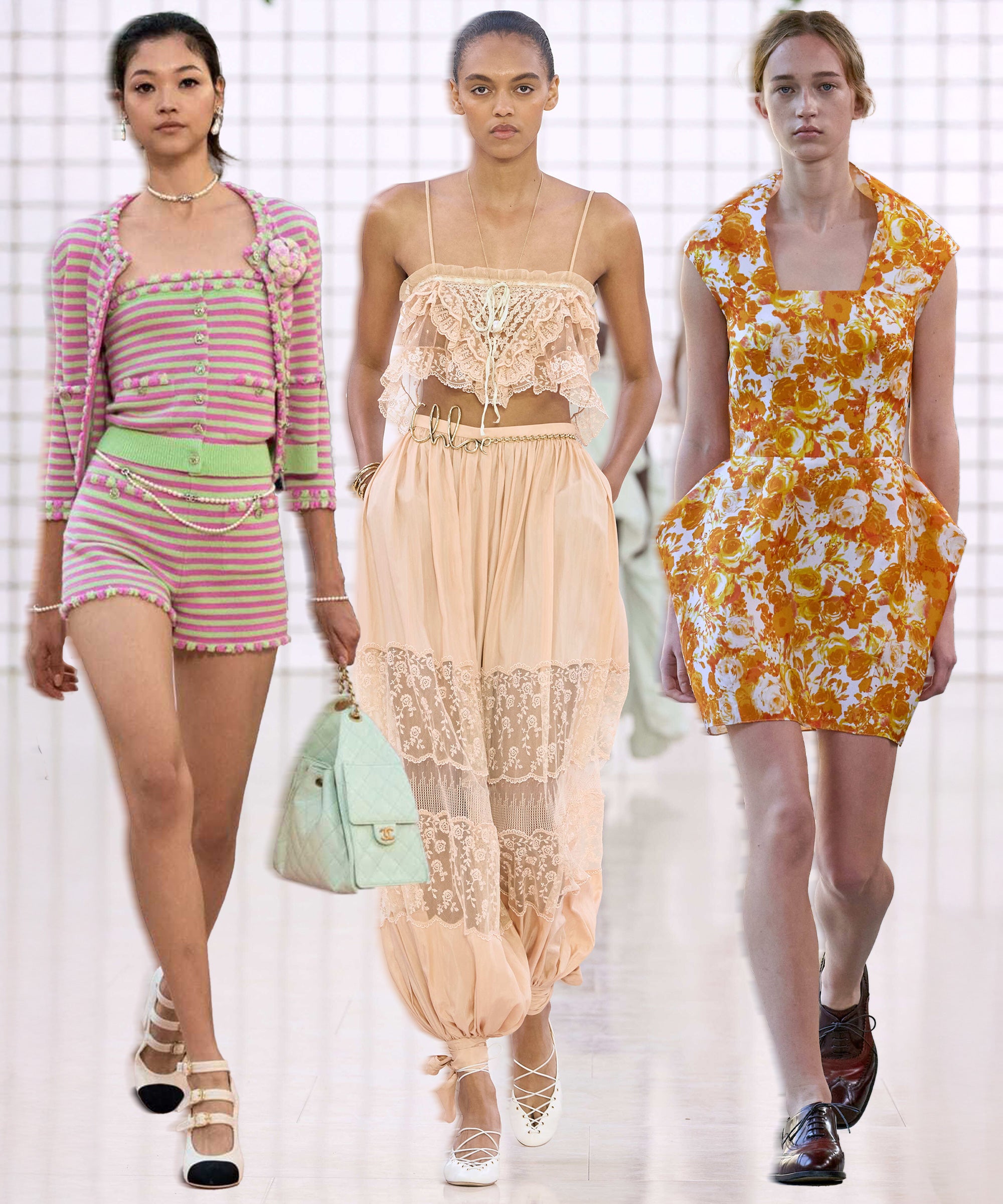 First on our radar are pantaloons — yes, you heard right: The Victorian-era underpinnings are having a renaissance, stepping out from the shadows to swap in for your trusty wide-leg trousers and barrel jeans. Spring will also usher in a bolder reimagining of white lace that’s delightfully reminiscent of doilies and vintage drapery, but made for everyday wear. (The trick? Pairing these pieces with utilitarian items to dial down their primness.) Darling knit sets are primed to revamp your off-duty style, while vibrant chartreuse offers a vivid punch of energy. Then, there are tops decorated with rosettes and floral embroideries, channeling all the aught-era vibes with a sweetness that’s both feminine and fun.