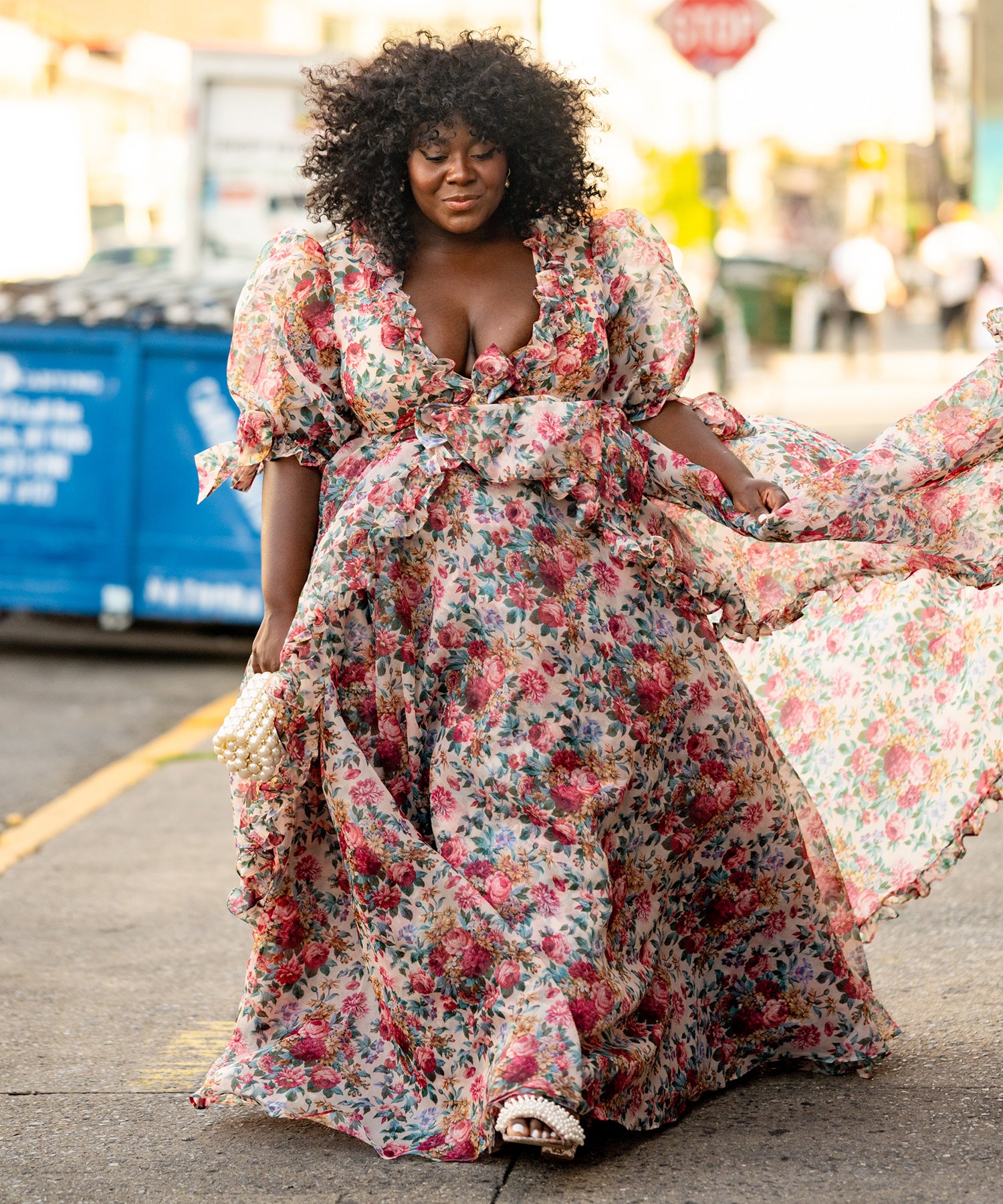 Karya Schanilec, a street style photographer based in New York City (whose photos are featured throughout this piece), agrees, adding that the problem stems from photographers and media “deprioritizing” shows that put size-inclusivity at the forefront: “I am often one of only a handful of photographers shooting outside these inclusive brands like Selkie, Chromat, or Eloquii, while there will be hundreds of photographers at less inclusive designers.”