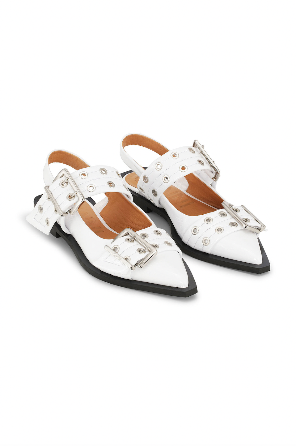 Ganni White Wide Welt Buckle Ballerinas, $, available at GanniImage Courtesy of Ganni