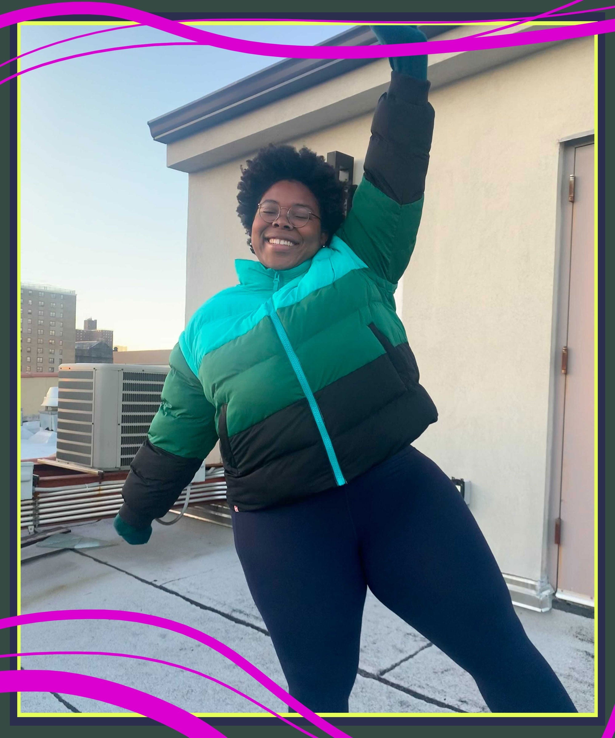 Our plus-size writer Chichi Offor suited up in this bold striped puffer — you can see her wearing it in her usual size of 2X above. Made from recycled polyester, it features an oceanic coloway and zip-off sleeves for easy conversion into a vest.