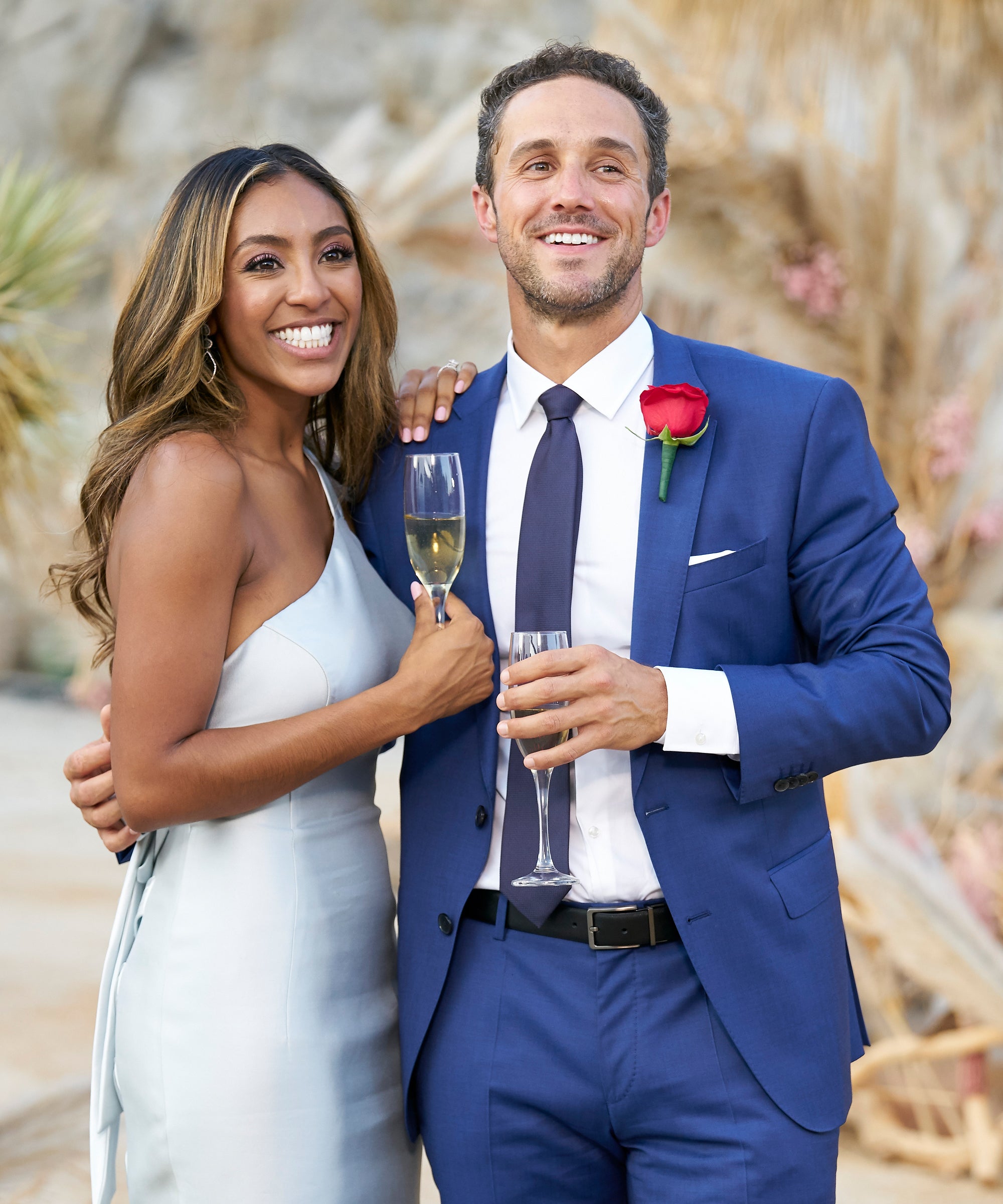 Just moments before Clark proposed, Adams told him, “That first night when I got here, I was extremely excited about the possibility of finding love, but also very nervous and scared, because I didn’t know if finding true love was possible.” She continued, “When I first met you, I thought to myself, ‘He’s different, and that man is kind. He shows gratitude, and has the biggest smile. He has been through a lot, but has never given up, but also has learned how to read me better than really anyone ever has, and knows how to comfort me when I’m down.’ There was one point in my life when I thought I would never get married, because of all the pain and the heartbreak I had been through, and I hit absolute rock bottom. And I know I told you that I love you, but… it’s more than that.” After saying yes to the proposal, Adams rode off with Clark in the New York City-inspired cardboard taxi that first made an appearance in their hometown date.