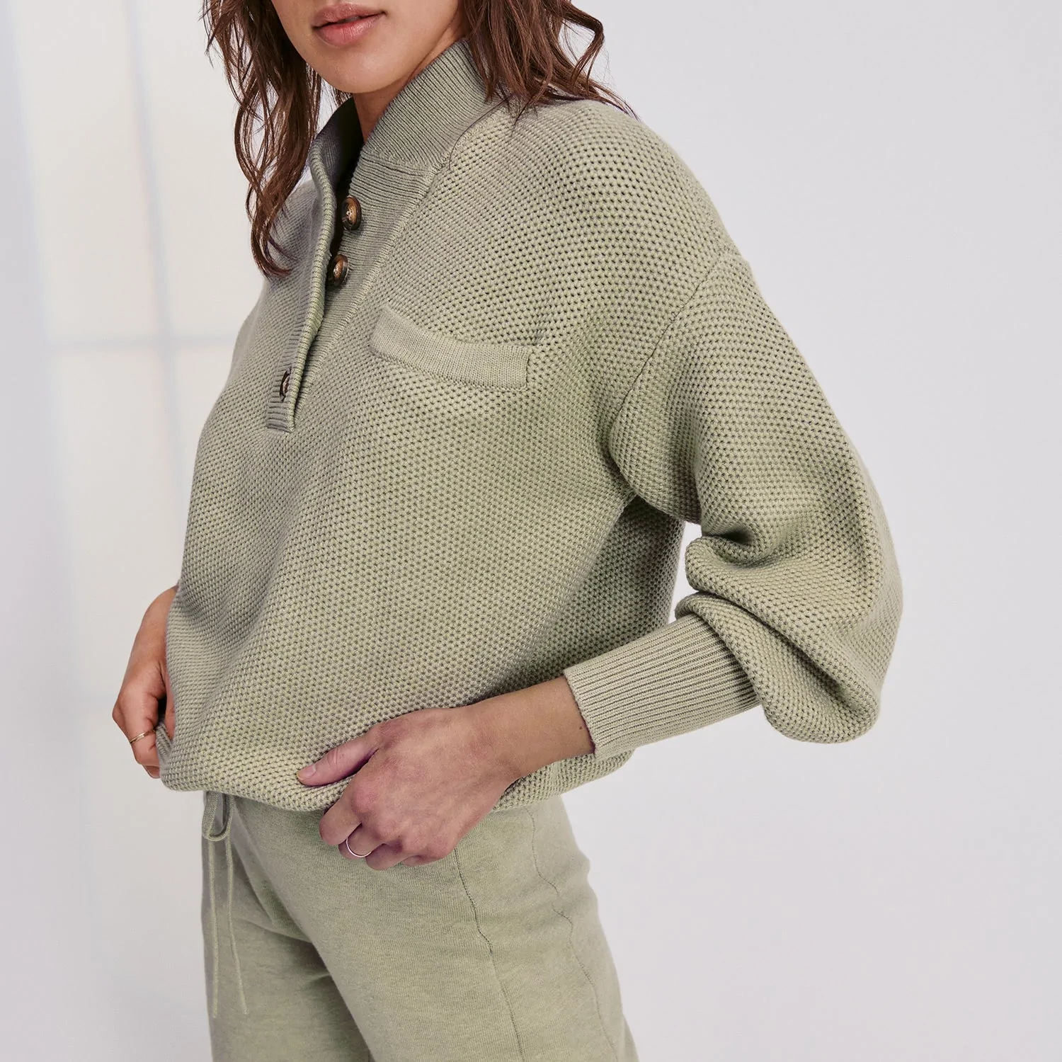 Pro tip: This chunky cotton knit features back buttons, which means it can also be worn like a cardigan.