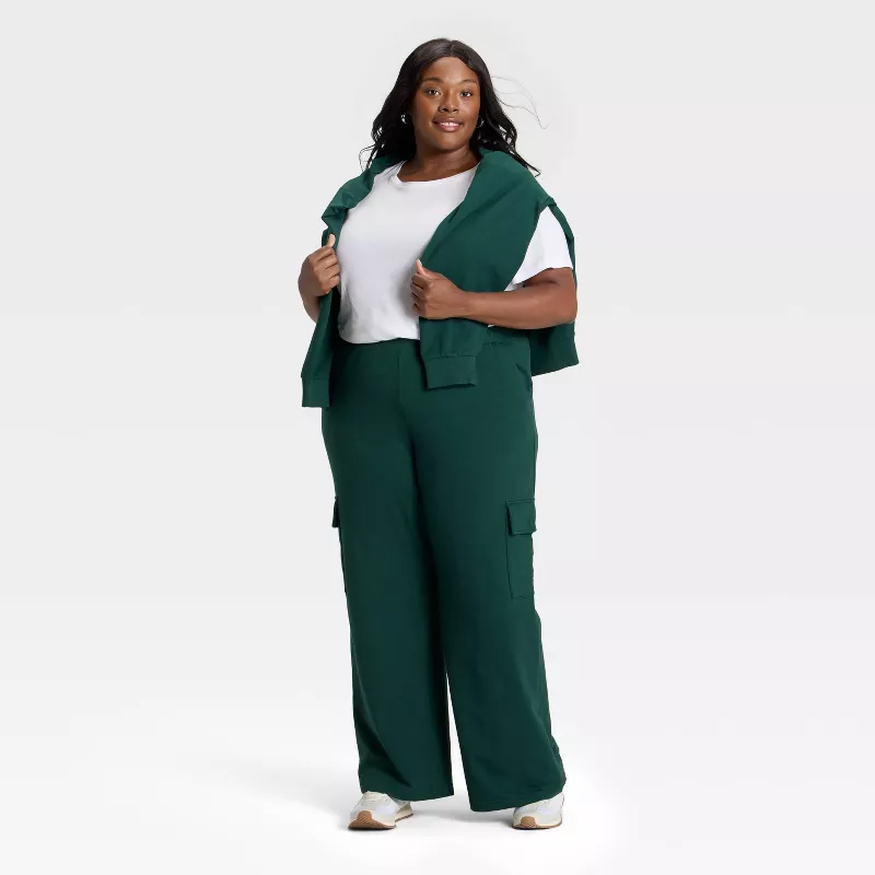 Ava & Viv Plus High-Rise French Terry Wide Leg Cargo Pants, $, available at Target