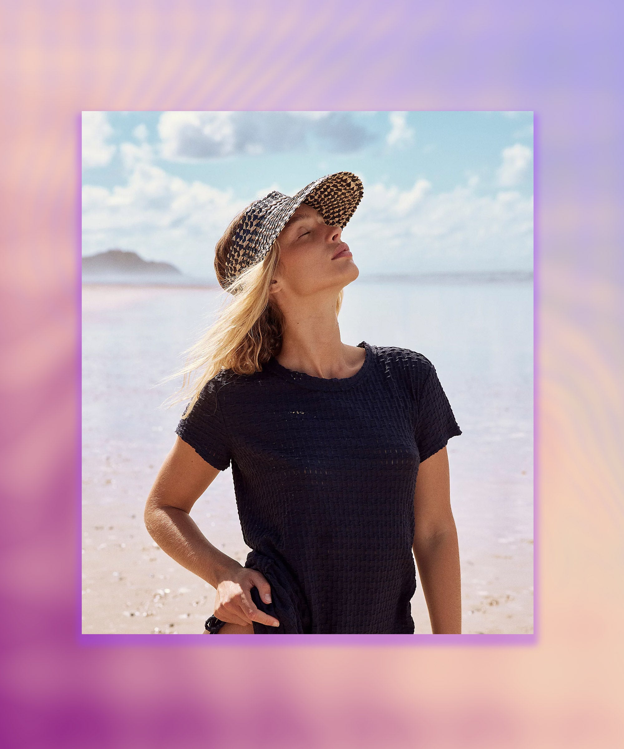 Straw hats are the ultimate summer headpieces — they’re lightweight, quick-dry, and come in an array of fabulous silhouettes. Plus, the wide brim slouches ever-so-perfectly to keep your face shaded from the sun. If you’re limiting yourself to just one beach hat this summer, we recommend going with one made of good-ol’ straw.