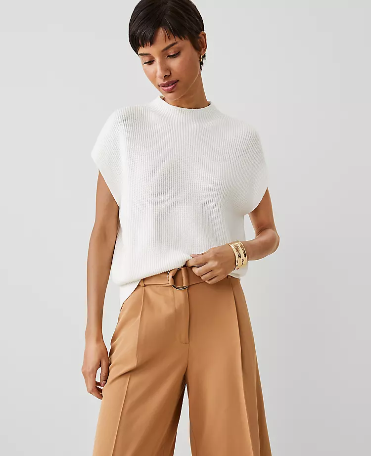 Ann Taylor Ribbed Mock Neck Wedge Vest, $, available at Ann Taylor