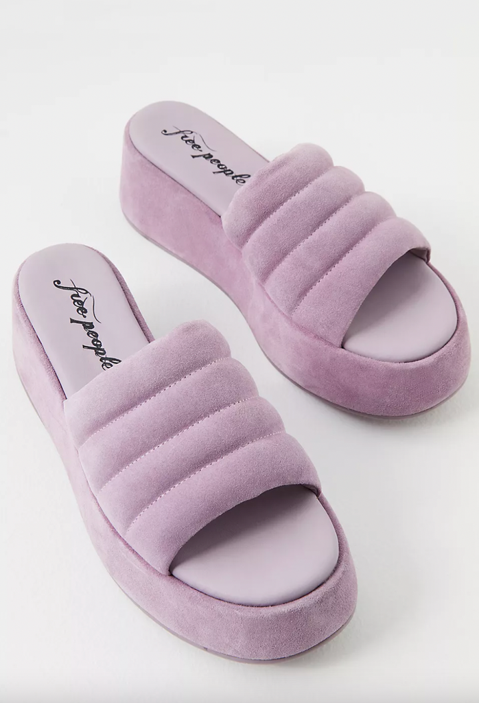 Let’s get high — off the ground, that is. Platform shoes continue to be a favorite summer shoe because these height boosters are generally more comfortable than actual heels. Plus, the chunky sole can provide cushioning between you and the hard floor or sidewalk. Check out platform sandals (and flatform sandals) with thick soles made from lightweight natural cork or natural rubber.