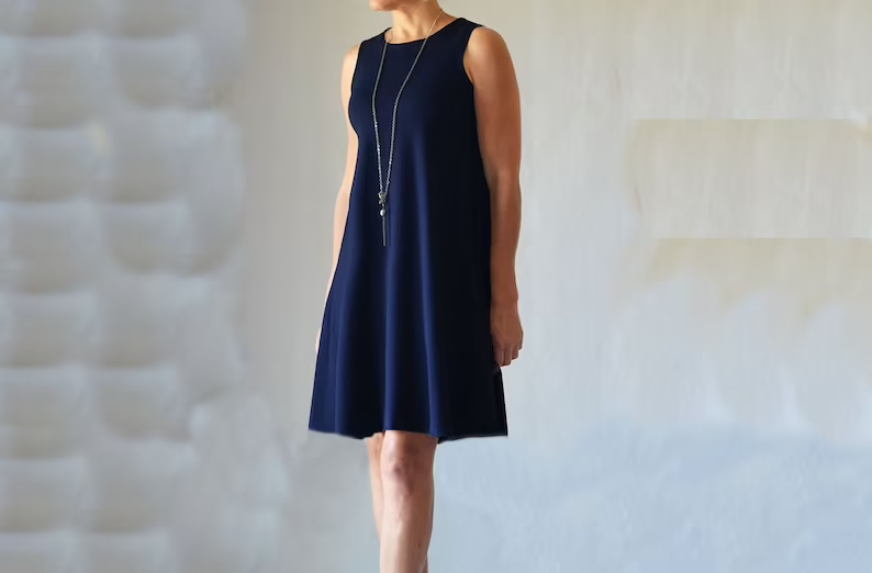 AngieandWes Dark Navy Organic Cotton Swing Dress, $, available at Etsy