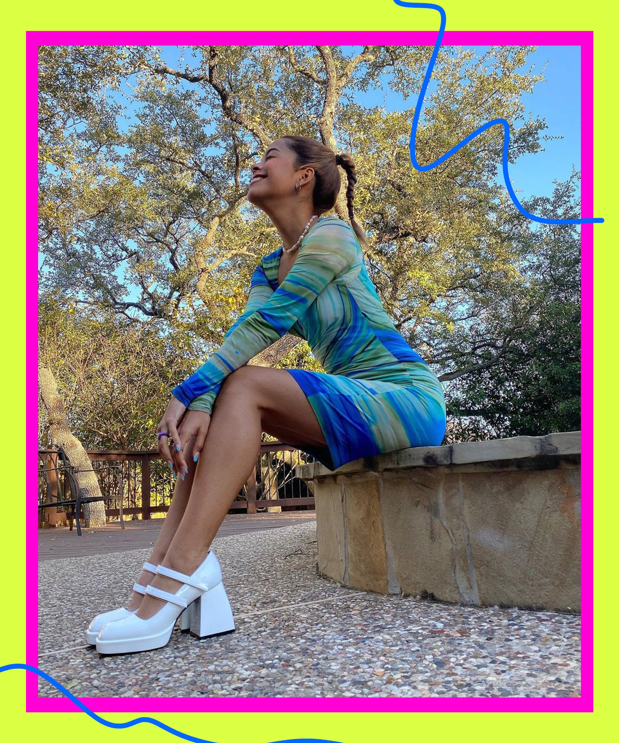 TikTok star Remi Bader, who’s known for her realistic plus-size clothing hauls, is also adding brighter and more vibrant colors to her wardrobe: “I am ready to bring color back into my life,” she tells Refinery29. Specifically, she says that she wants to invest in colorful shoulder bags and heels for the summer. Duda Teixeria, the co-founder of Instagram’s favorite jewelry brand Éliou, wants to amp up the drama in her wardrobe. “I will be going for ‘the more the merrier,’ ‘the bigger the better’ philosophy when it comes to getting dressed,” she tells Refinery29. “For all the days I stayed in and the events I missed, I will make up for them in feather count, and channeling Diana Ross at the 1981 Met Gala in the process.” To her own surprise, she also wants to wear heels.