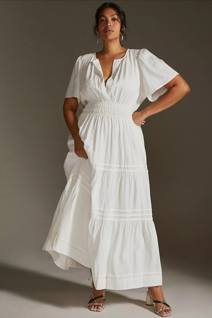 Another Anthropologie reviewer who owns both styles shared her personal experience after trying on the linen maxi dress: “I got this dress in white and this is my 5th Somerset dress. The other four are all in cotton, but I am now in love with this linen version as well. Best fit EVER for my hourglass shape. It is a bit heavier than the cotton version due to being lined. But I LOVE how the linen drapes, especially how the sleeves are less stiff than in the cotton version. I am not so keen on pastels, but this white dress will be my new go-to white summer dress.”
