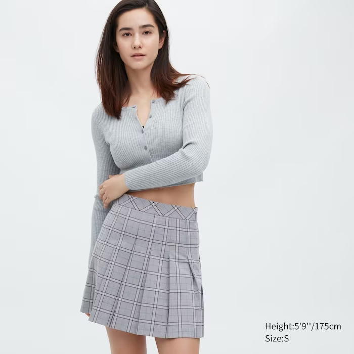 Uniqlo Pleated Checked Mini Skirt, $, available at Uniqlo