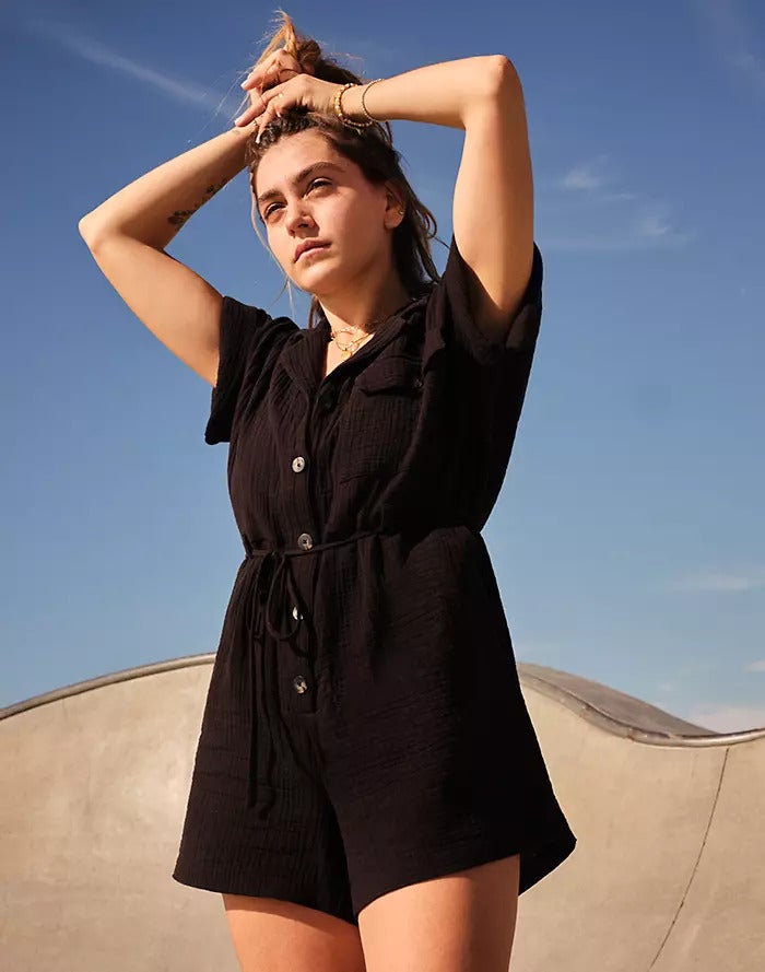 Madewell Lightspun Belted Safari Romper, $, available at Madewell