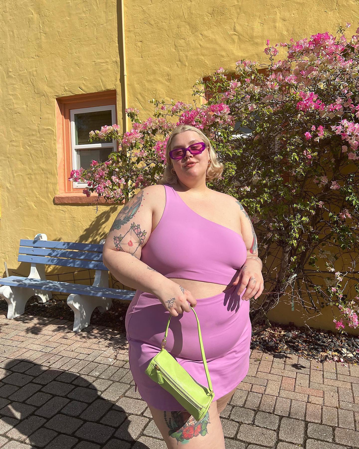 If you’re attending an al fresco event soundtracked by the sweet sounds of obscure techno, we suggest a look that’s equal parts sporty and club-ready. Girlfriend Collective’s orchid-hued exercise skirt is the perfect partner-in-crime for a night on the town — especially when paired with a stretchy, midriff-baring bra top and matching translucent sunglasses.