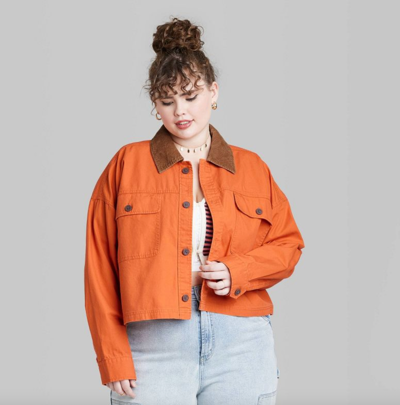 This lightweight shacket adds a pop of fun color to your outfit, and the cropped length makes it an easy layering piece. Those details, along with the contrasting brown collar, offer a clever, trendy take on the shacket from Target’s affordably priced Wild Fable line.
