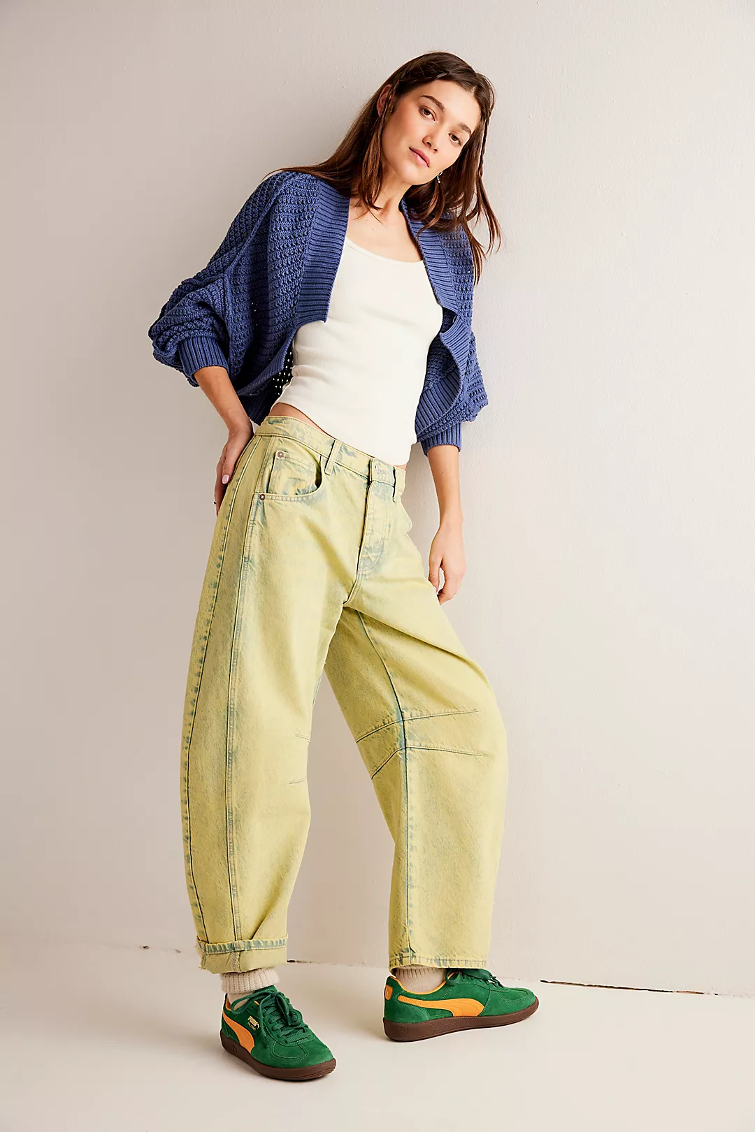 We The Free Moxie Metallic Low-Slung Barrel Jeans, $, available at Free People