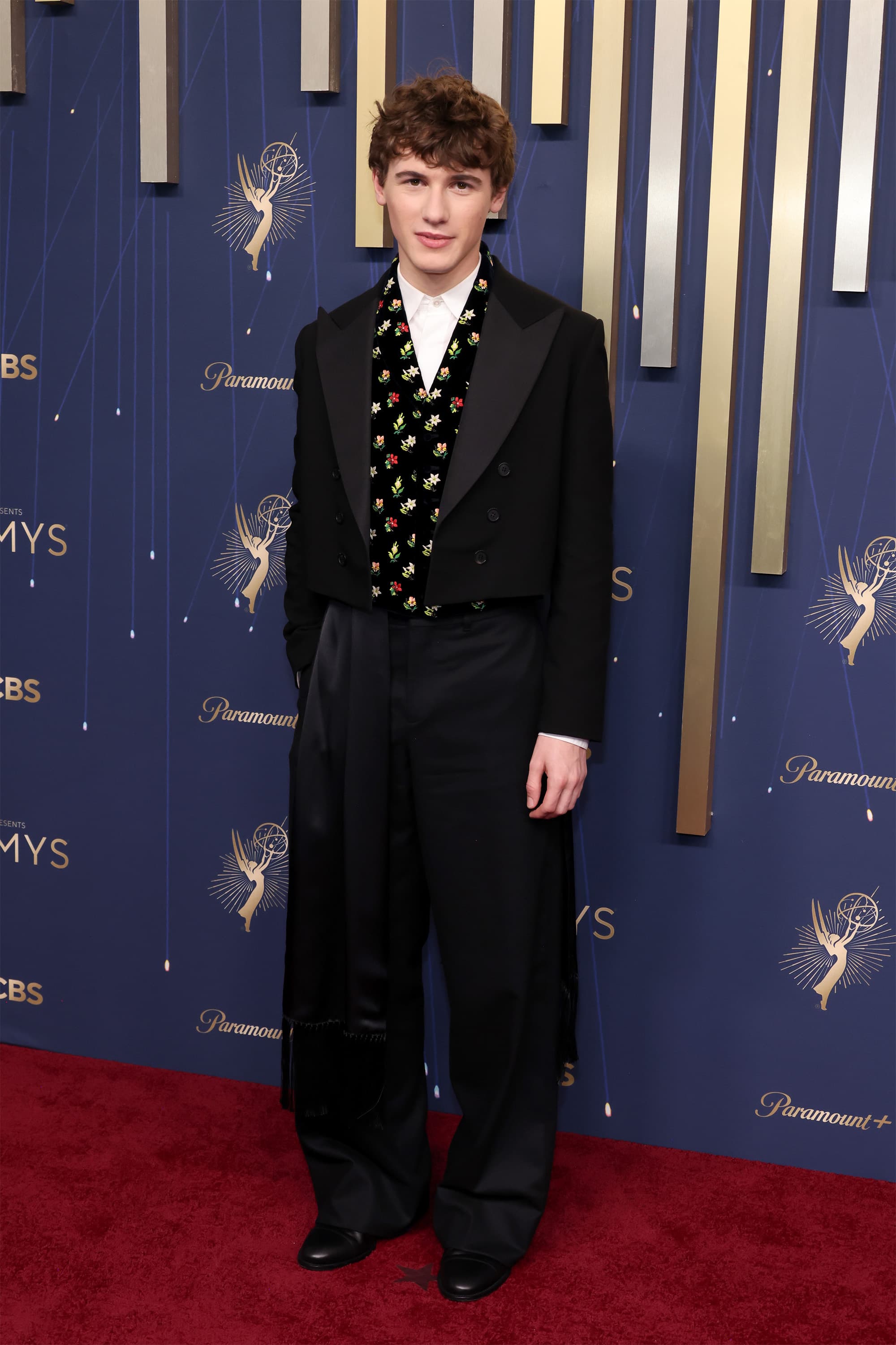 Sam Nivola from The White Lotus looking dapper in an oversize Dior tuxedo with an embroidered floral vest.Photo by John Shearer/WireImage