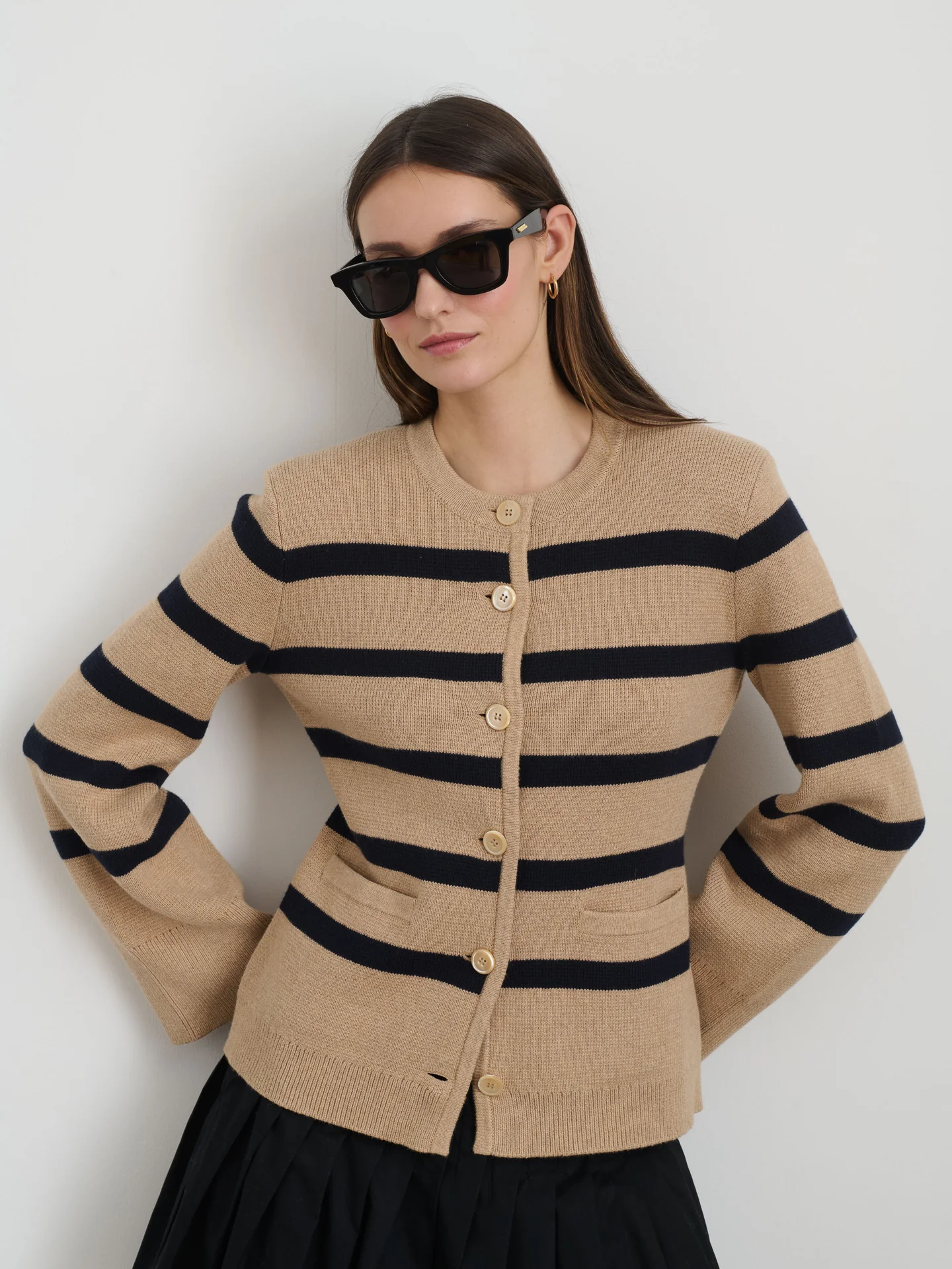 Alex Mill Cotton Cashmere Provence Stripe Sweater Jacket, $, available at Alex Mill