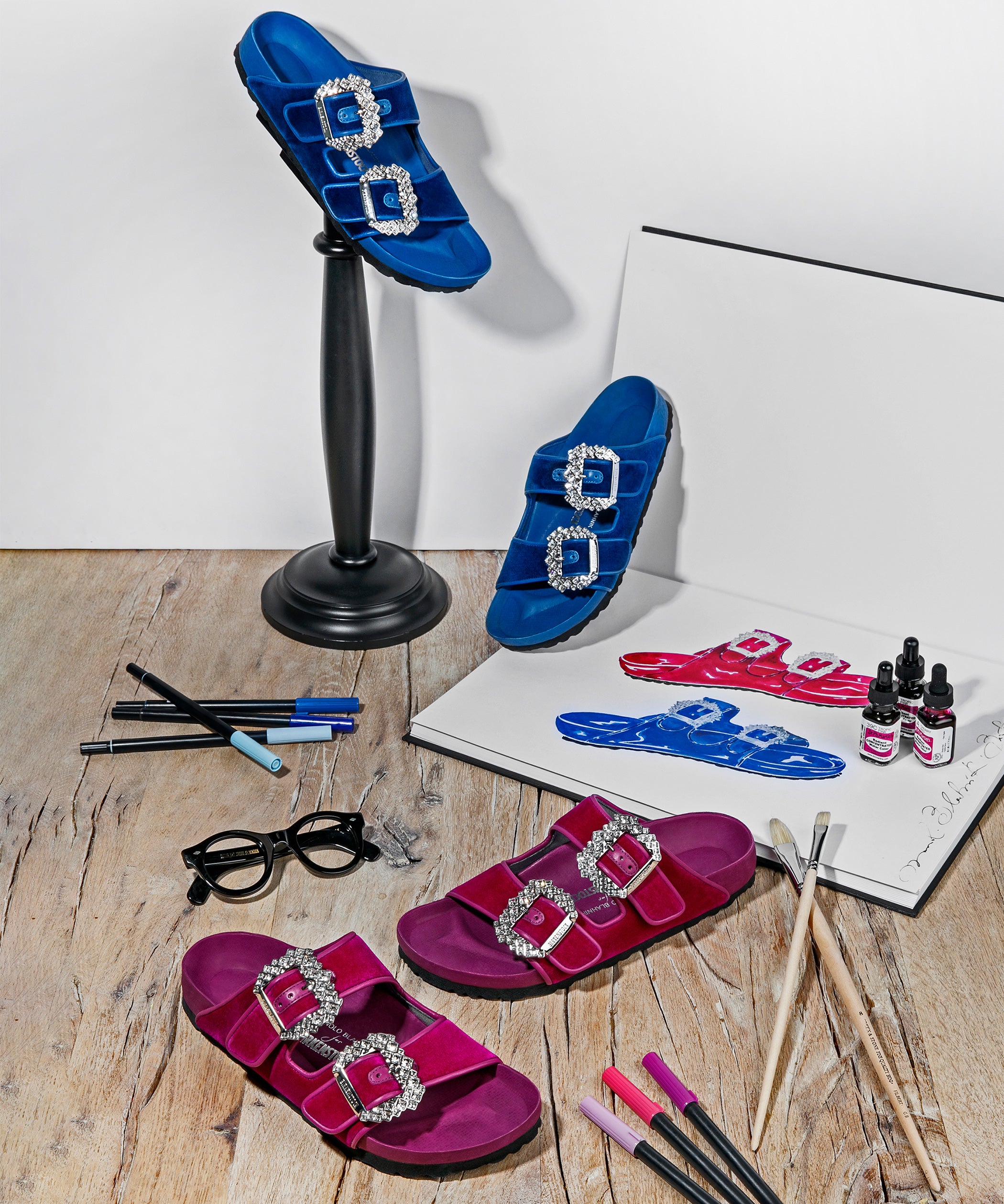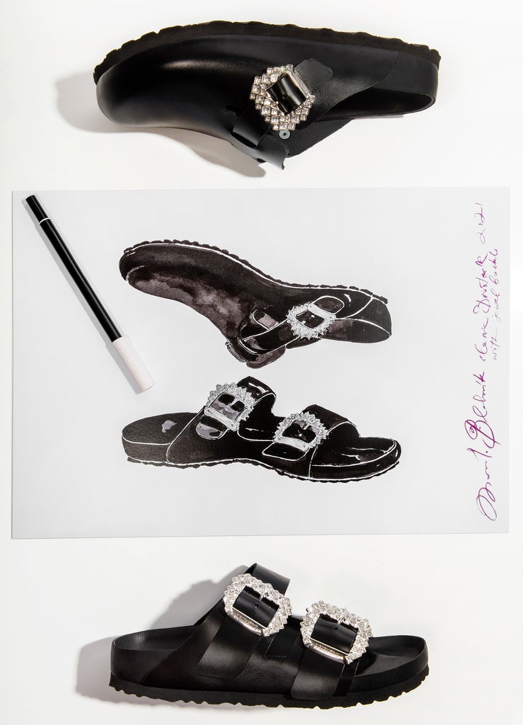The Birkenstock x Manolo Blahnik collaboration is available at Manolo Blahnik locations and online.
