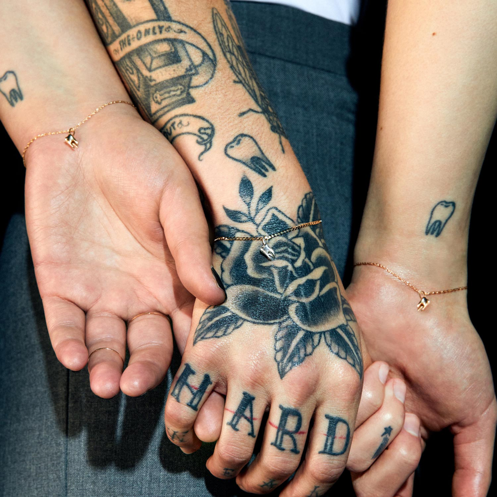 We’re a little bit obsessed with boygenius’ matching tooth tattoos, which they got in honor of their first EP Bite The Hand. Now, we’re swooning over their tooth charms. Wear them on your favorite bracelet, hoop earrings, or chain for a trendy charm necklace moment (the larger teeth can be purchased with various choker chains).