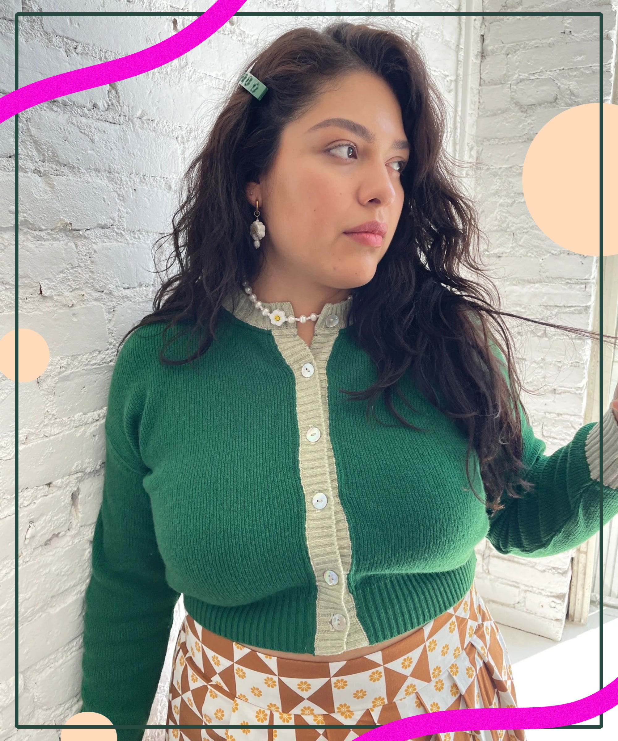 If you’re all about the return of Y2K style, this candy-colored cardigan in all its midriff-bearing glory is the knit for you.