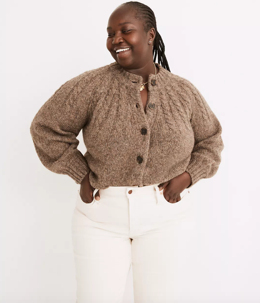 Want to test the trend without going all-in? Madewell describes this cable knit cardigan as having a “slightly cropped fit.”