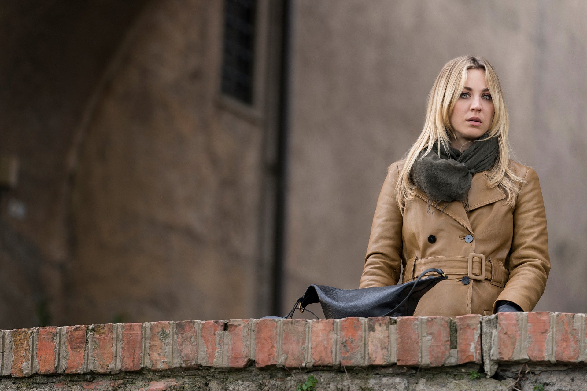 “The trench was meant to be sort of reminiscent of old movies,” says Thomas. “It felt so beautiful to have this woman wear a protective leather trench coat while riding around Rome on a scooter. And the color was so interesting — it fit her personality perfectly.”