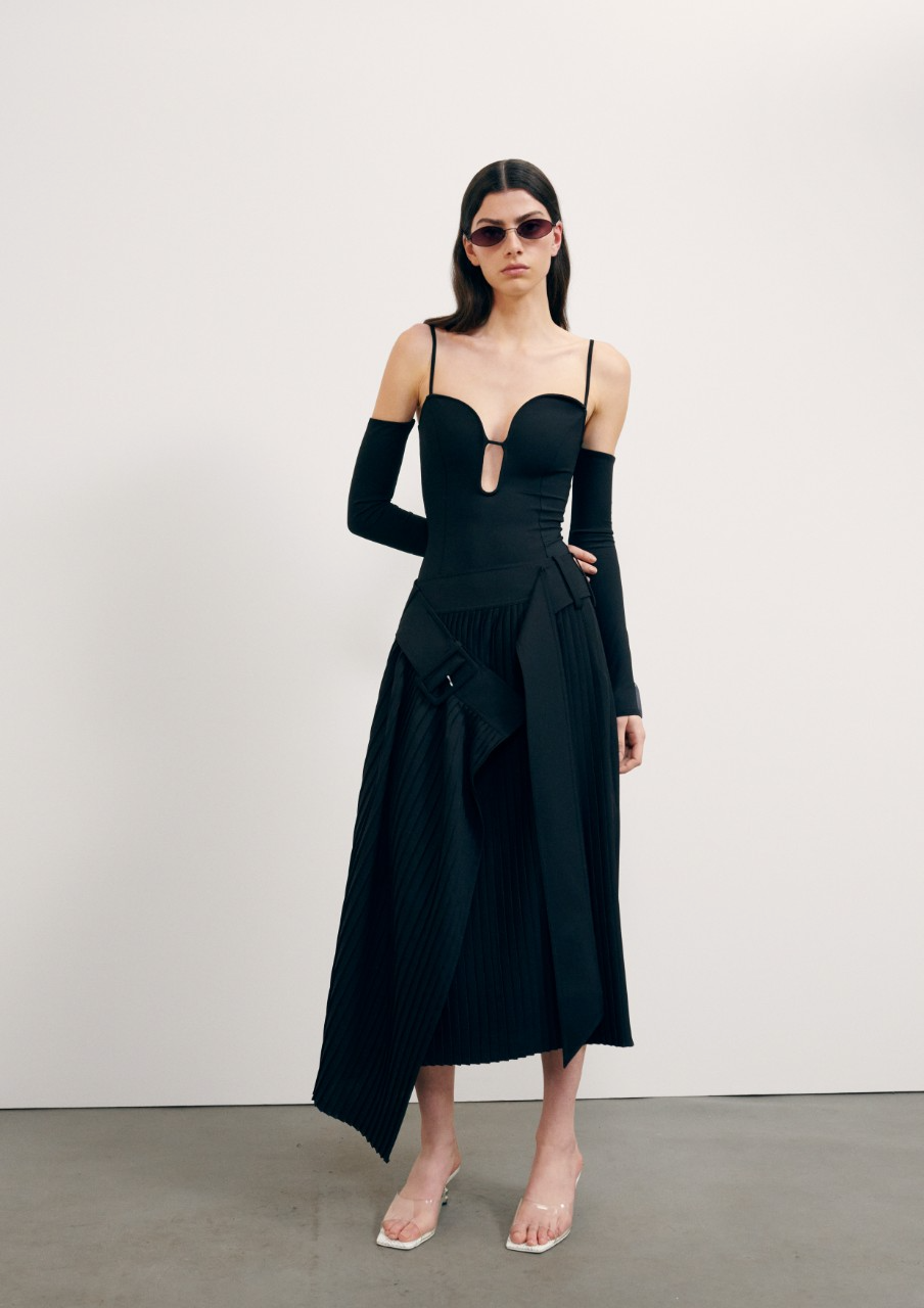The collection features elevated basics that boast modifiable details. You’ll find detachable-hemline cocktail dresses, asymmetric skirts with button-up seams, double-layer trench coats, and jackets that can be worn backwards. “I always focus on making my collections as timeless as possible, and one way of doing that is with customizable details,” Hwang said in a press release. “To see my clothes being interpreted by people in their own way is one of my greatest pleasures, and I can’t wait to see how customers engage with this fun and dynamic collection for H&M.”