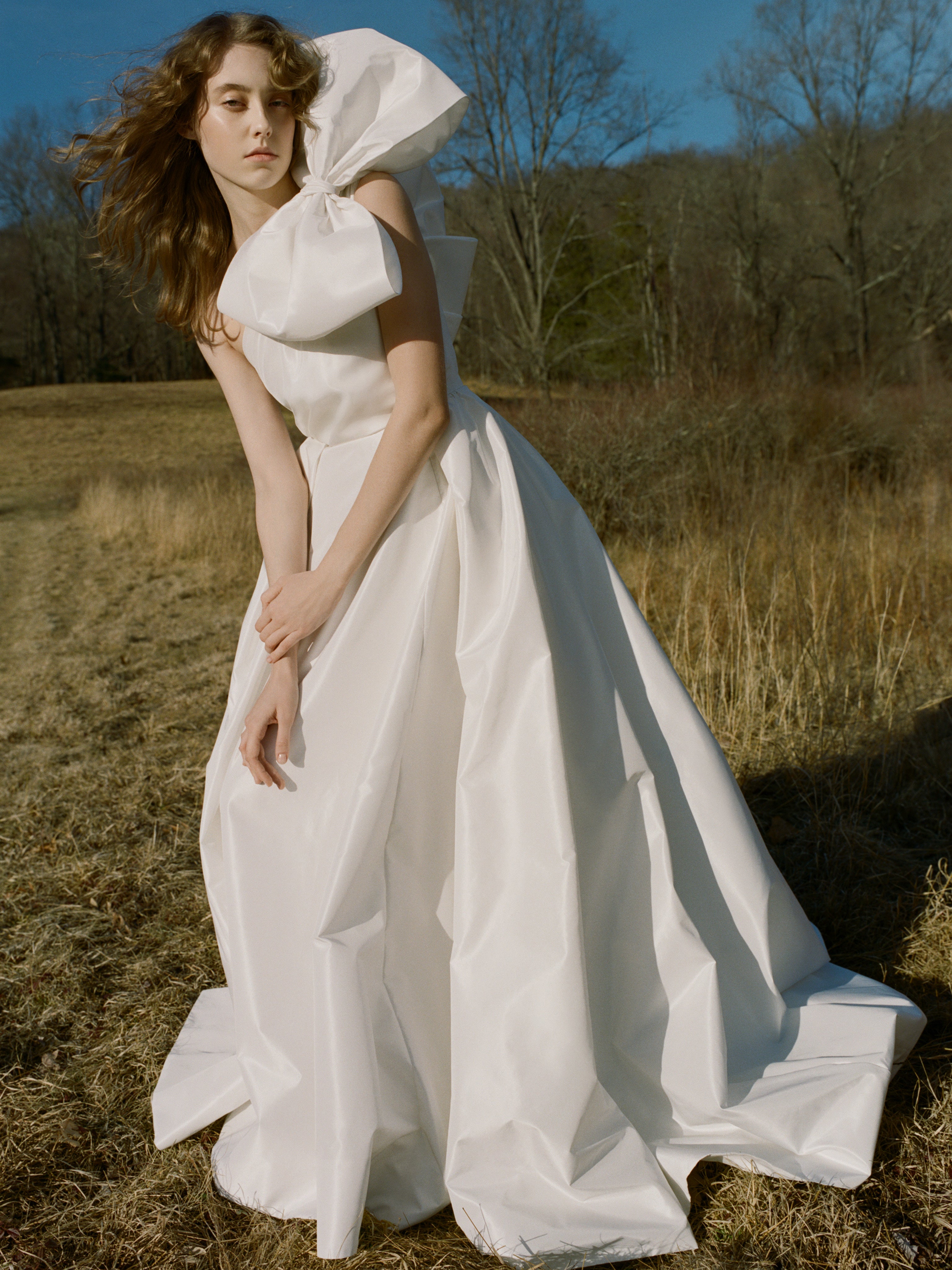 While bows have long been a wedding staple, their triumphant comeback is marked by their dramatic opulence and versatility. Looks reflect their traditional essence with modern takes, including detachable bow trains and hair accessories.