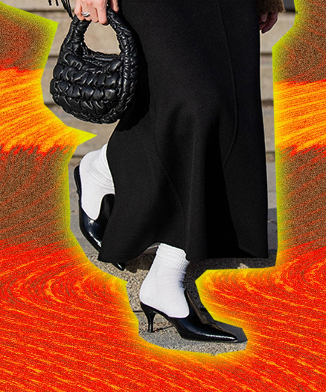 It also feels like a Carrie Bradshaw-esque update on the Mary Janes with socks trend that’s been circulating the past few months, offering a more elevated take on the girlie trend that dominated 2023.