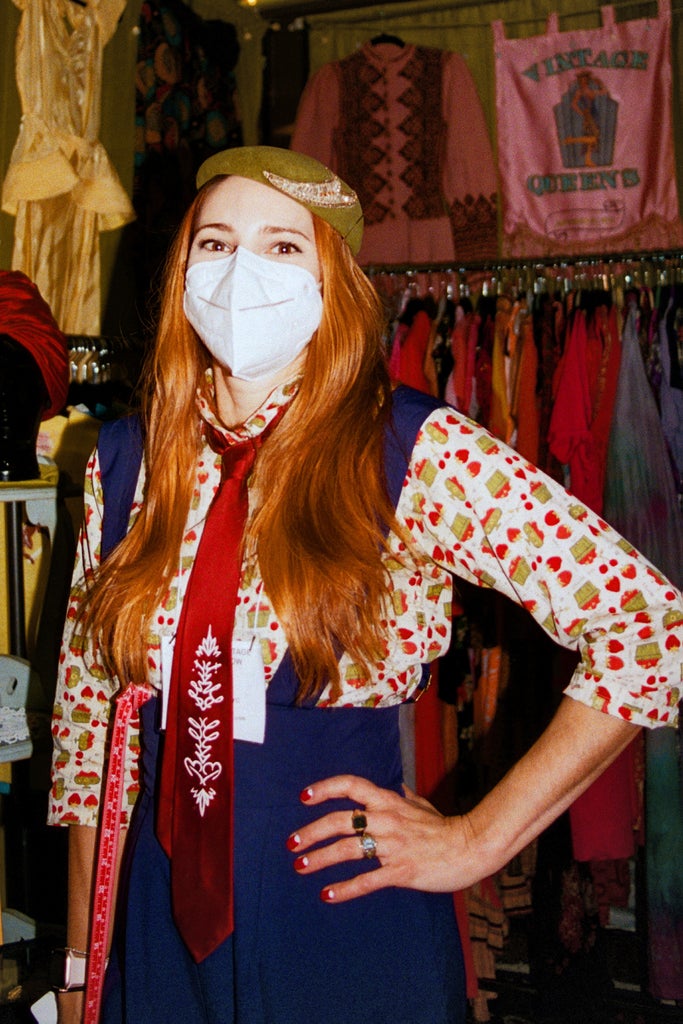 “There are so many cool people who like to dress so great,” says Jade Oliver, the founder of Vintage Queens NYC, a Queens-based vintage boutique, who sported a strawberry shirt and blue overalls, paired with a red tie, green hat, and a rhinestone face mask. “You really get to see the interesting dressers in New York when you come here.”