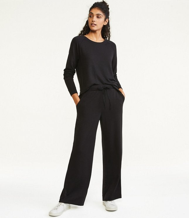 “Soooo soft with stretch and fabric return 2nd-Long enough (I take a 30” inseam) 3rd-Can do a super casual t-shirt, sneakers or mules and cashmere sweater 4th-Easily wash and dryable! So basically I have stood by my dryer in my undies waiting to put them on because I wear them all the time! I did buy this style last year but they have a similar pair in stock all the time. Truthfully, except for some of my J Crew cashmere, Lou&Grey s clothing, leggings, and especially the sweater sweats have dominated my clothing choices for months now. I just hope the “love” that makes L&G so special will continue as they are reabsorbed by The Loft” – Larissa, R29 Reader
