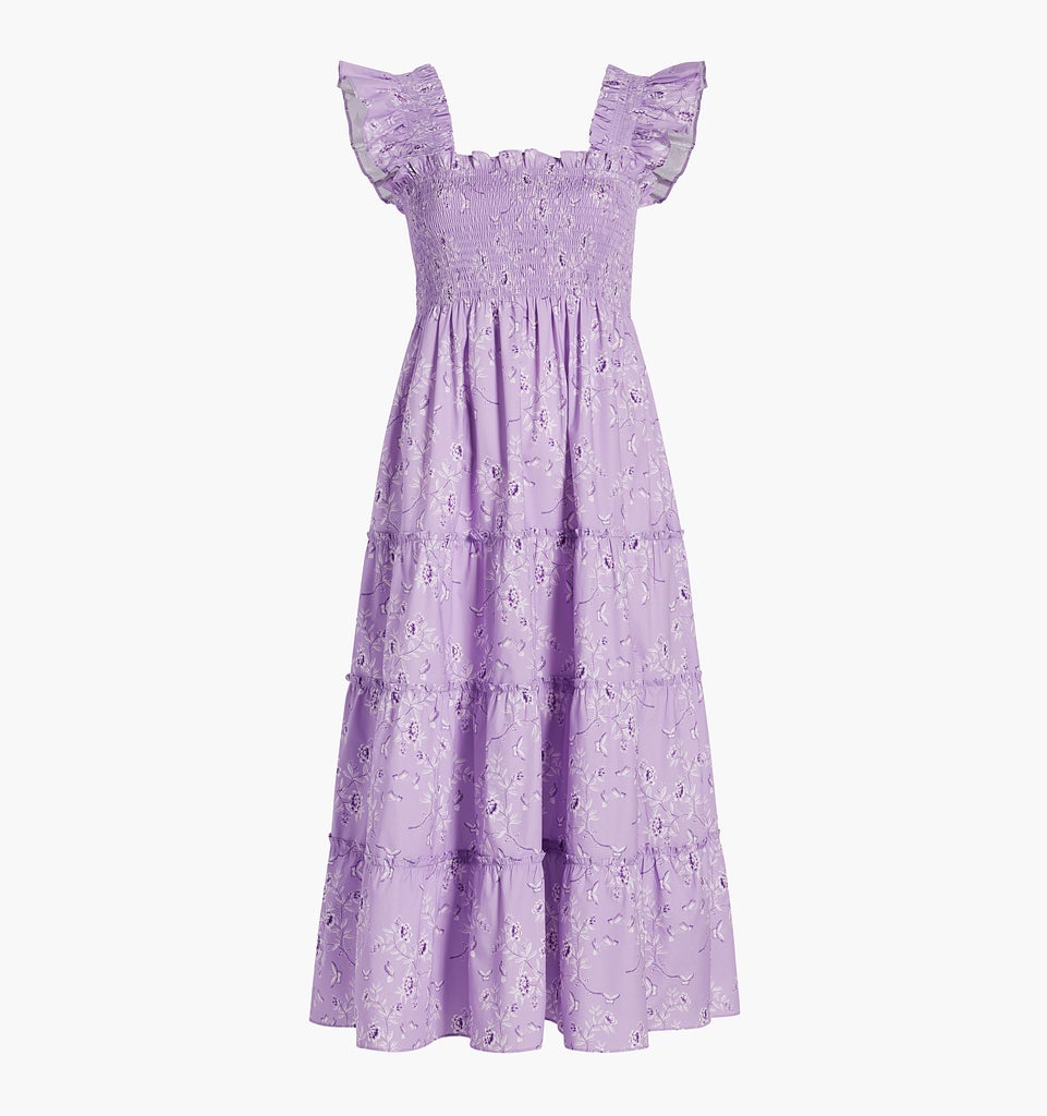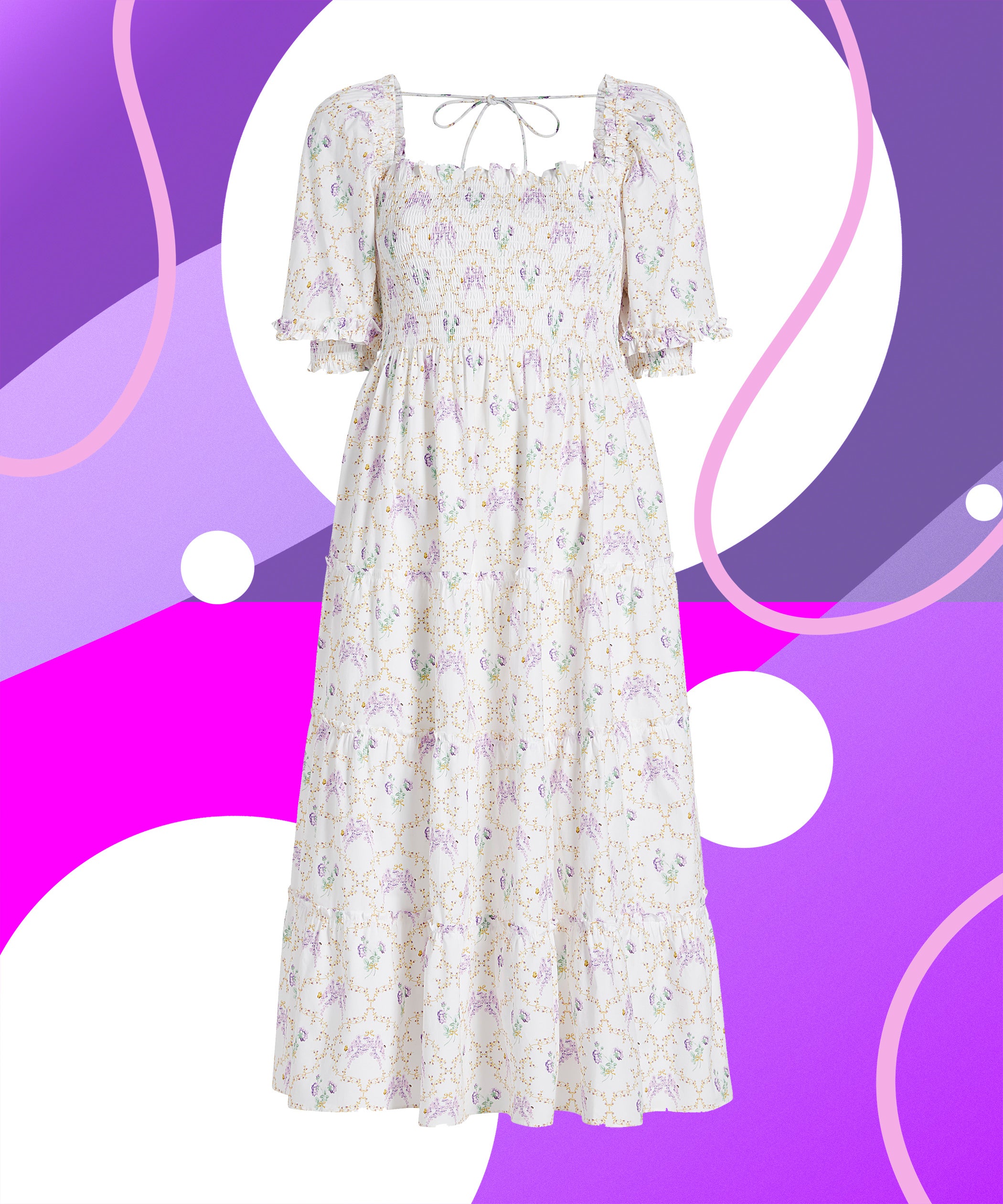 To celebrate the Emmy-winning show and keep fans buzzing for Season 2, Hill House Home founder Nell Diamond created three limited-edition versions of her brand’s lauded Nap dress. The collaboration includes both the Ellie style, in floral lavender and pink, and the Nesli style, in Whistledown Trellis, a print that’s exclusive to the collaboration. To create the delicate patterns, Diamond tapped Diane Hill, a Black, London-based artist and printmaker. Adding to the romantic aesthetic, Diamond designed two hairpins for the capsule — one pink and one blue — which were handcrafted in Italy.