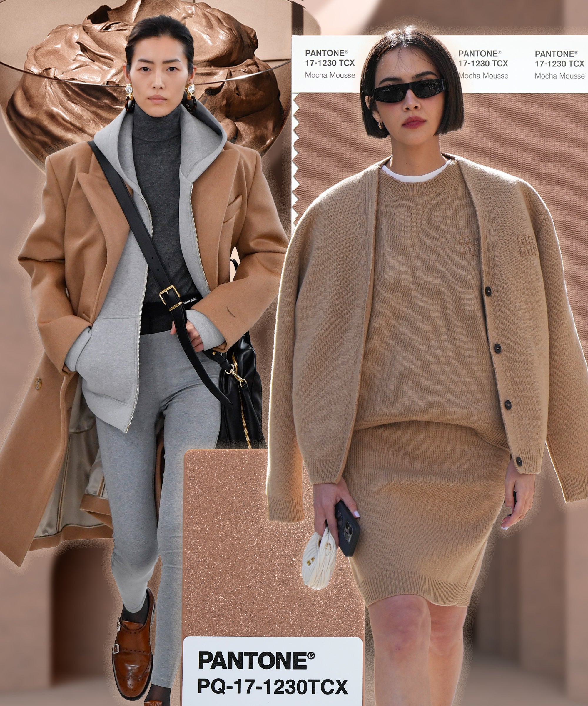 At its best, Mocha Mousse reminds me of Miu Miu’s quirky fall/winter 2023 collection, filled with pantyhose-as-pants and jaunty little cardigans. The one place I really loathe seeing Mocha Mousse is in athleisure: It reminds me too much of the militaristic, drab Yeezy shows of the 2010s. While Pantone’s slides did show a few examples of sneakers and leggings, it seemed that, for the most part, the color-forecasting company is leaning away from that particular reference. Good riddance. The head-to-toe beige spandex look is done and gone. Long live the fuzzy, cocoa-swilling libertine.