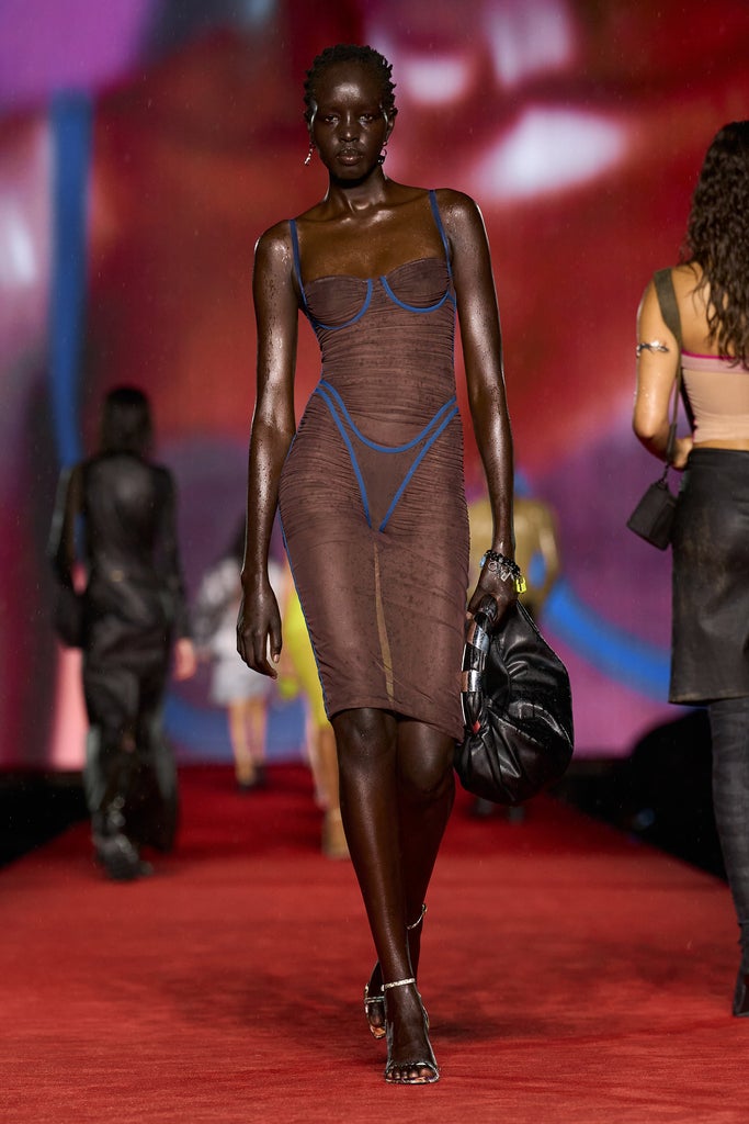 Whether you’re more of a bodycon girl or prefer a silky co-ord or a head-to-toe statement look, going dark brown for autumn and winter nights is a great way to spice up your going-out looks. Just like your chocolate-y brown coat, an evening number in this hue screams luxury without the luxury price tag. While this sheer Diesel dress from the Spring/Summer 2024 runway is sure to turn heads, designers like Marine Serre, Fendi, and Carolina Hererra also got in on the dark brown fun with slightly less revealing numbers.