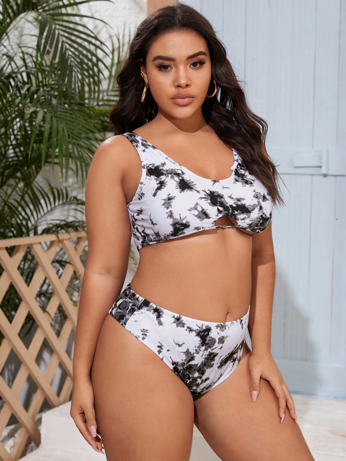 SheIn Plus Tie Dye High Waisted Bikini Swimsuit, $, available at SheIn