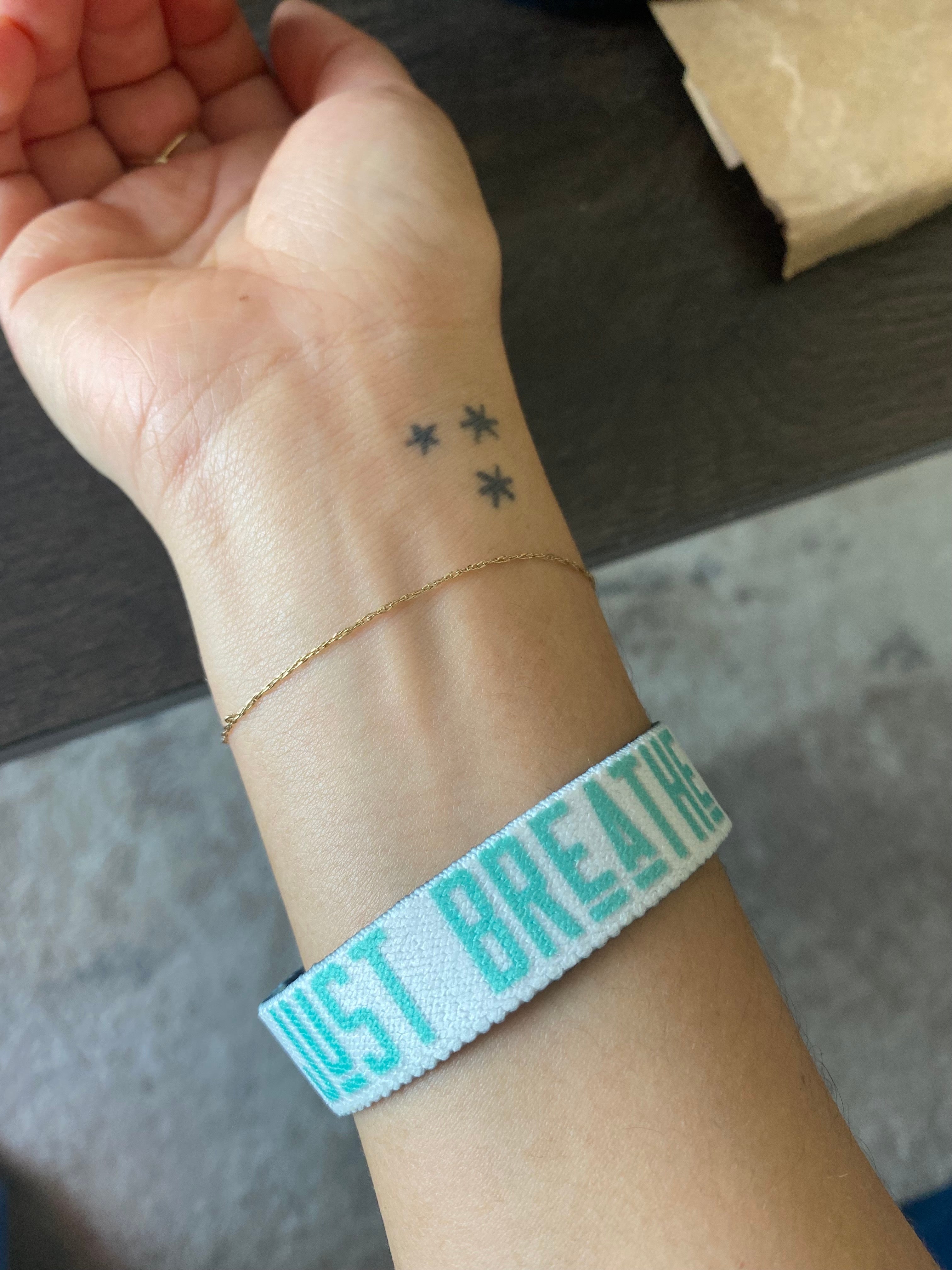 “So, shoutout to my amazing therapist of four years for telling me about Zox. As someone who deals with an anxiety disorder, I often struggle with letting my nervous thoughts take the driver’s seat. While regular yoga, journaling, and meditation all have been immensely helpful tools to support my mental health, sometimes a quick daily reminder can work wonders to bring me back to Earth if I feel like my emotions are getting carried away. Zox bracelets come in several different patterns — I went with this geometric print with a splash of mint green (clearly a color I’m loving at the moment), with the words “Just Breathe” on the inside. It’s a daily reminder just for me (and for everyone reading this too, I guess!) to take things slow and know that I’m okay.” — Karina S. Hoshikawa, Beauty & Wellness Market Writer