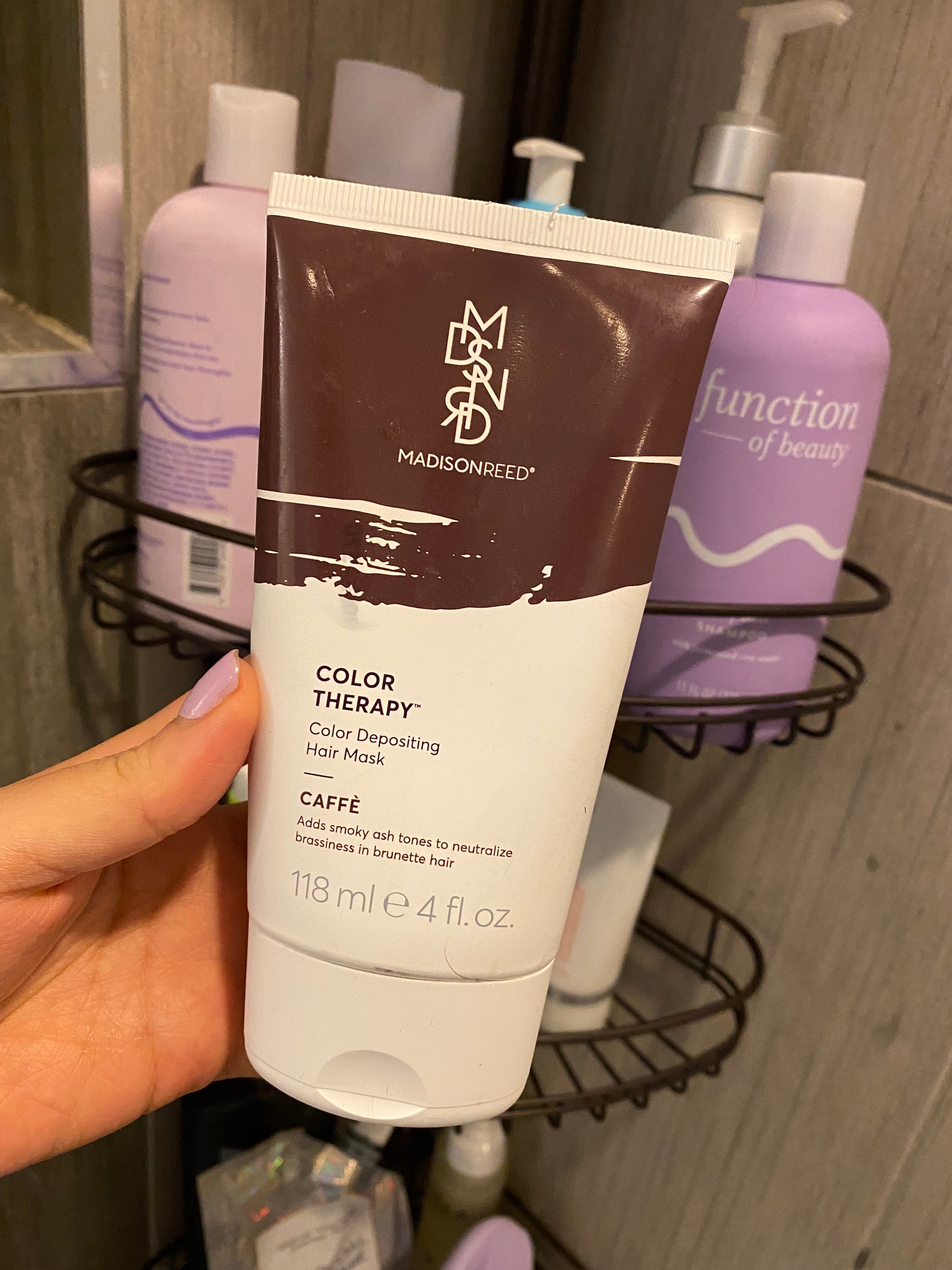 “I have naturally very dark brunette hair, and last year decided to brighten things up with some strategically placed ash brown highlights to add some dimension. I still see my amazing colorist Mai at Bumble and Bumble every few months, but I use a few toning products at home to help neutralize the brassy tones that love to creep up on color-treated hair. One of my favorites is Madison Reed’s Color Therapy Hair Mask in Caffe, a cool-toned espresso shade that I use about once a week to help refresh my highlights. At $20, it doesn’t break the bank, yet delivers the salon-inspired experience from the ease of my apartment.” — Karina Hoshikawa, Beauty & Wellness Market Writer