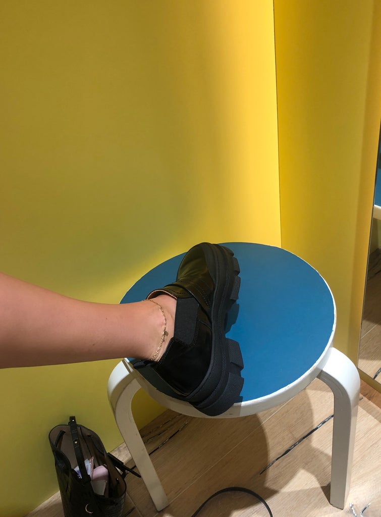 In recent years, this has culminated in my footwear. In 2019, while at Ganni in Stockholm, I spotted a pair of black, lug-soled sport loafers. The fact that they were chunky, heavy, and bound to give me shin splints were all part of their allure. The shoes, now sold-out, weren’t crafted out of satin, like something out of Carrie Bradshaw’s unrealistically large West Village closet, nor were they designed to make my butt look good in jeans. (In actuality, they probably made my butt look worse, not that I care.) I stomped around in them for months, wearing them to work, dinners, and bars with actual people in them. I rented a Totême blazer month after month on Rent The Runwayjust to wear with my chunky shoes