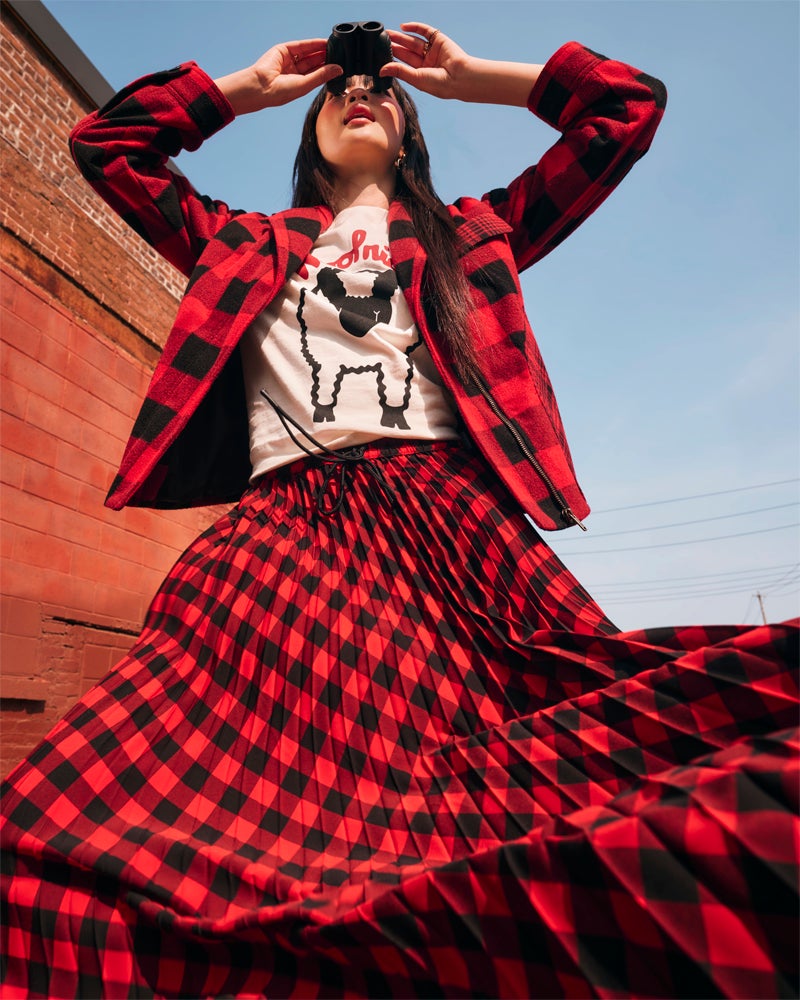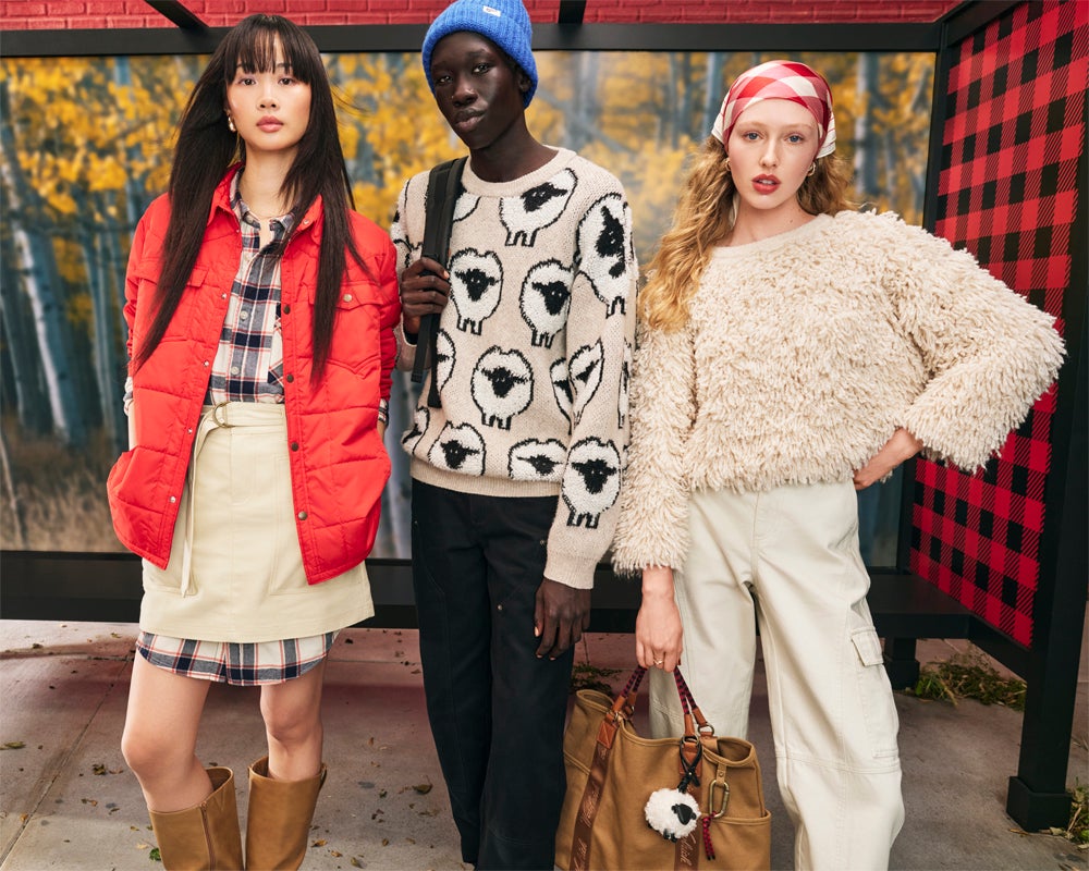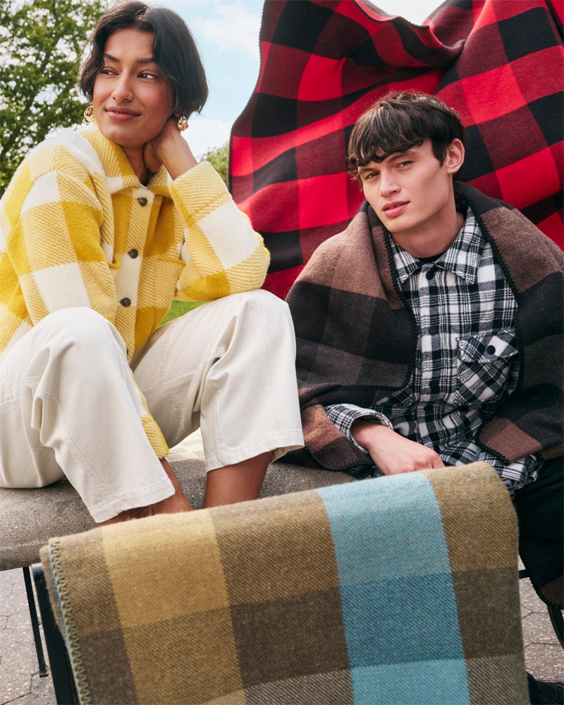 The classic utilitarian aesthetics and functional features get a playful Target spin à la vibrant colorways, playful sheep graphics, printed reversible styles, and even a campaign shot in New York to show how Woolrich’s designs can translate into “modern urban style.” So whether you break up your buffalo check “Pennsylvania tuxedo” with a graphic tee, cargo pants, or quilted skirt, you’ll look and feel confident taking on camping sites or bustling crowds.
