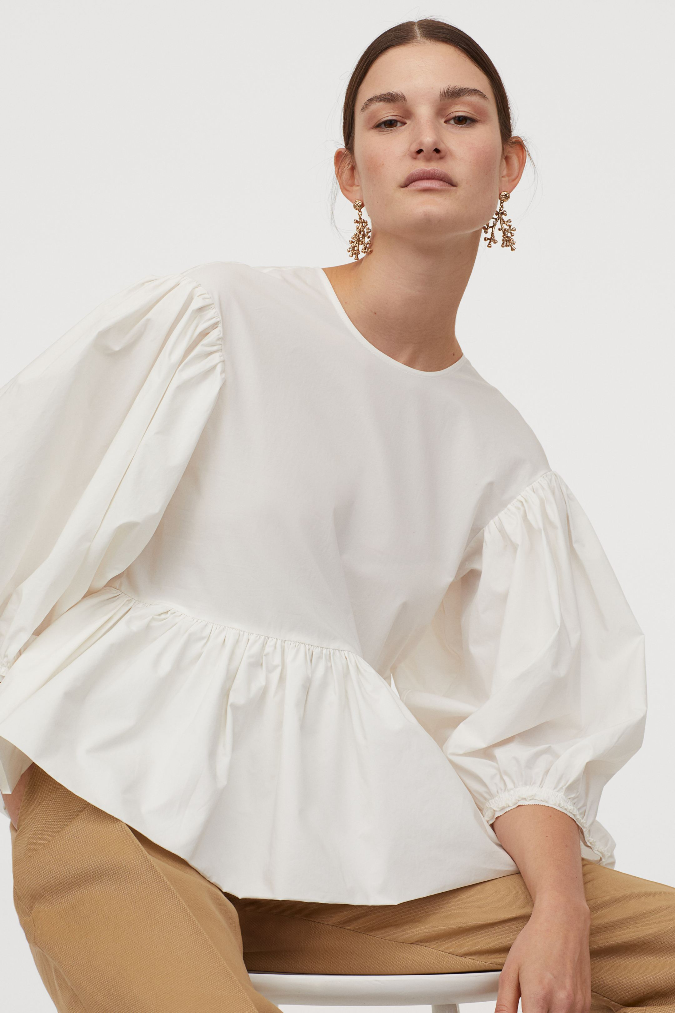 H&M Cotton Balloon-Sleeved Blouse, $, available at H&M