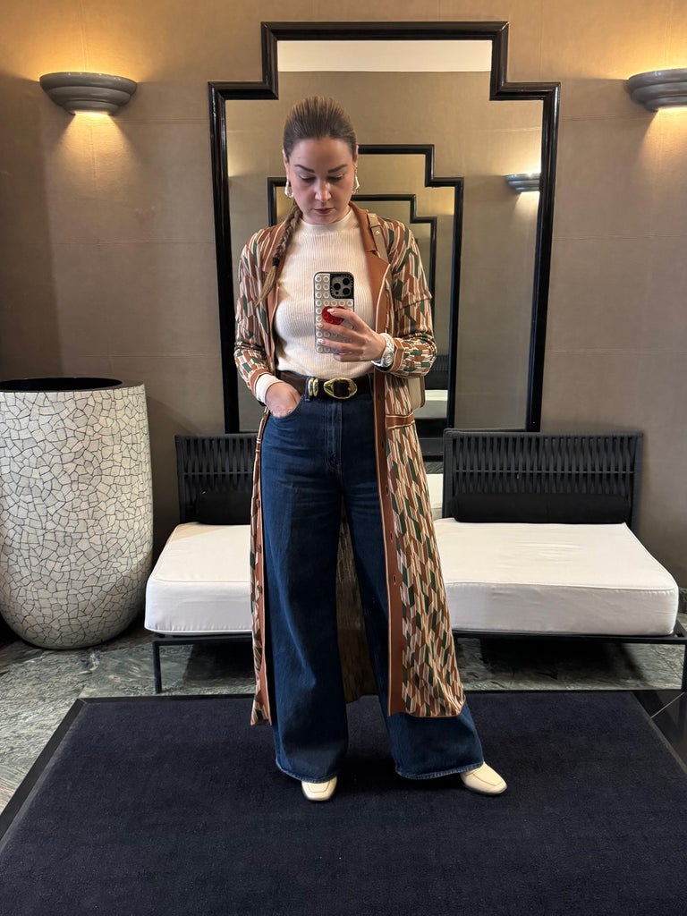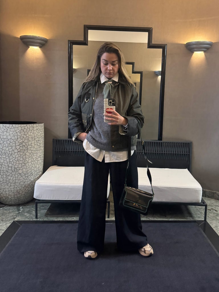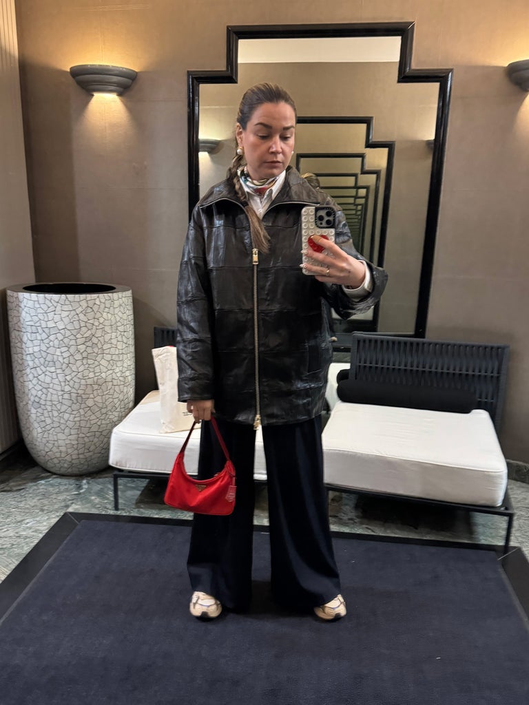 Instead, for versatility, I tend to stick to a few oversized outerwear silhouettes. That way, I can create layered looks underneath and cheat the image of more looks than I actually have in my suitcase by wearing the jackets open and closed. This waxed Barbour jacket (a signature of the brand for a very good reason) looks equally good with a sweater underneath as over it. Meanwhile, the Mango leather jacket with adjustable zippers that move both ways (photo below) can be worn to highlight the top or the bottom part of the outfit.