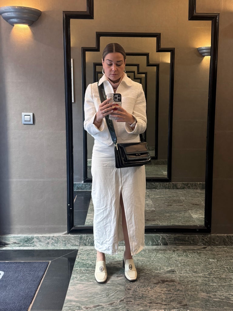 As with every work trip, I started packing for Paris by deciding on the three pairs of shoes I would bring. All had to pass the on-the-go test, ranging from shoes comfortable enough to sleep in (not really but you get the picture) to evening shoes that I can walk and stand in for at least four hours. I settled on ultra-comfortable sneakers from a past Adidas x Bad Bunny collaboration for the busiest days (my second favorite “fashion sneakers” are from the Adidas x Wales Bonner partnership), heeled loafers from French brand Nomasei for the slightly less busy days, and my forever favorite knee-high stilettos from Larroudé for evenings.
