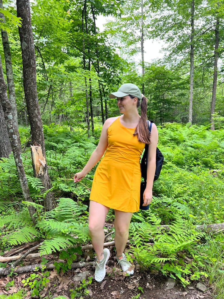 “I’m not normally a workout dress person, but I really love the feel of this one and the fun color! I often get self-conscious about my body in dresses, especially for workouts, but this dress made me want to branch out more with my workout wardrobe! The built-in shorts were a nice bonus. It was great for a chill hike through the woods.” —Sarah Caroline Crawford