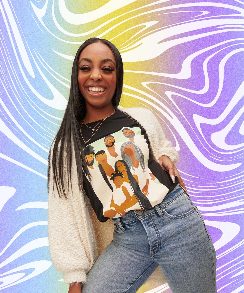 “I want people to embody my shirt’s fun, celebratory vibe. To feel gratitude for life and cultivate a sense of joy in spite of a painful history. Representation matters, so what better way for me to celebrate my image than to hide a part of myself in the design? One of the characters is heavily inspired by what I look like in a fresh set of box braids.”