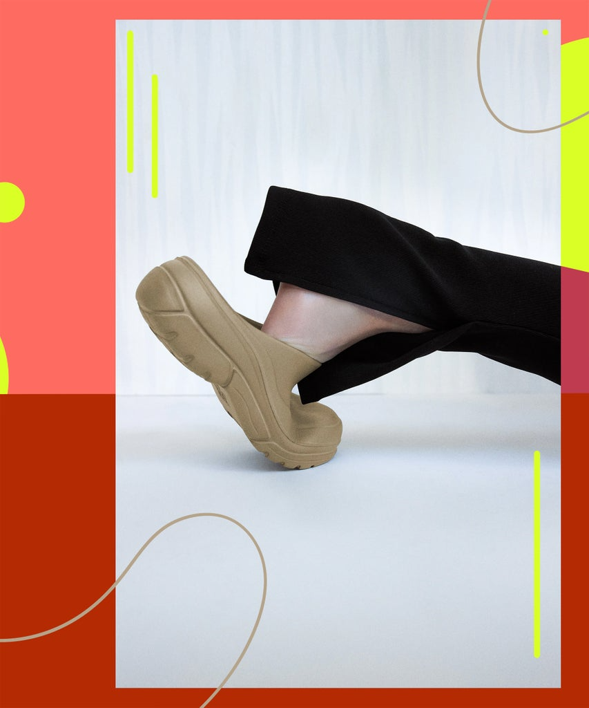 In November, following an especially filling helping of Thanksgiving leftovers, I sat down to peruse Zara’s Black Friday sale and immediately zeroed in on a pair of clogs. They were tan, bulky-looking, and made of rubber. The pair in question, called “Lightweight Sport Sole Clogs,” brought to mind Bottega Veneta’s now-famous — or, infamous, if you ask some — bulbous, ankle-height Puddle Boots, minus the boot part and the $650 price tag. (At the time, Zara’s iteration cost $35.90, though, they all sold out after being discounted to under-$10.) They also resembled classic Crocs, albeit slightly chicer, thanks to muted colorways and a lifted sole, and featuring no holes.