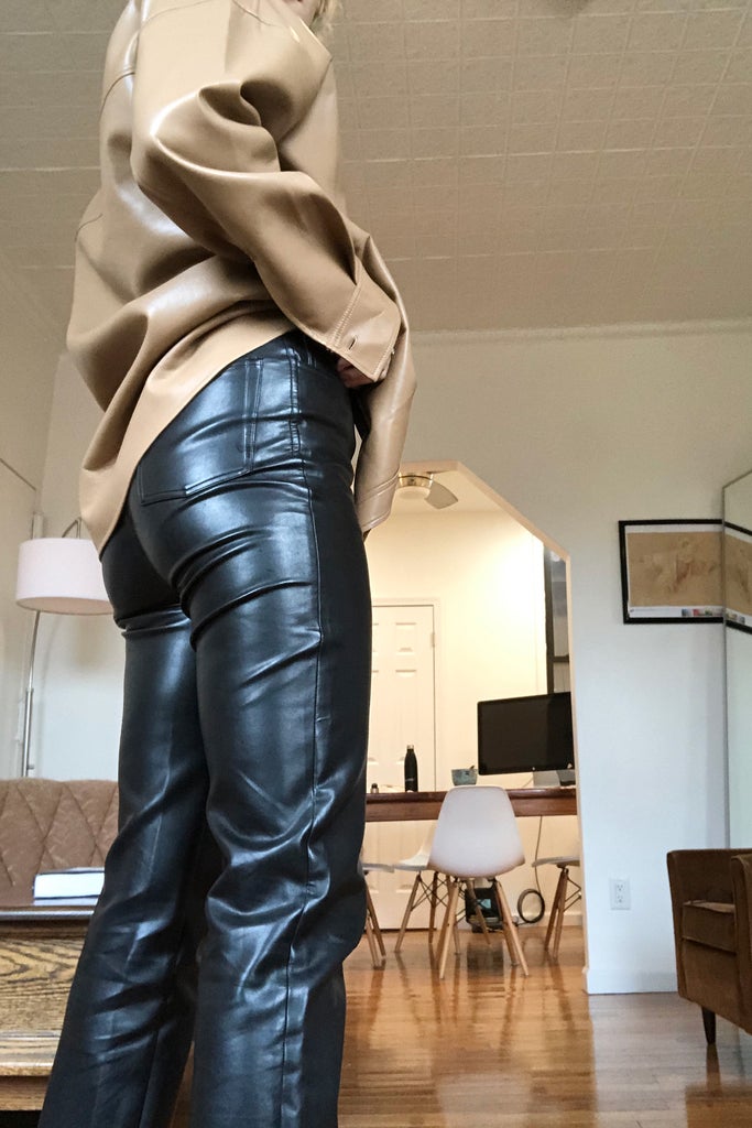 While I could probably go on forever naming the different things that my favorite cold-weather trousers could go with and praising them, there are a few downfalls to the viral style. According to some reviews on TikTok, they don’t fit larger body types as well. One user named Taylor filmed a duet video on the app alongside Wolfe, which showed her, a size 16 compared to Wolfe, a size 2, trying on the Melina Pant (available in sizes 00 to 16). While they fit both women, Taylor commented: “I can’t really sit down in them lol.” Another user named Kyy commented: “Definitely look good… but I feel like they were made to fit a smaller body type.” Another user, Madison, suggested the H&M version, “From one size 16 to another, they fit way better on me and I can breathe in them.” That being said, as others pointed out, and I (size 4) myself experienced, due to the vegan leather material used, the Melina Pants do stretch out with time. “The pants look amazing on you,” Mercades Brown commented on Taylor’s post. “Give ‘em a few more wears and they’ll fit amazing.”