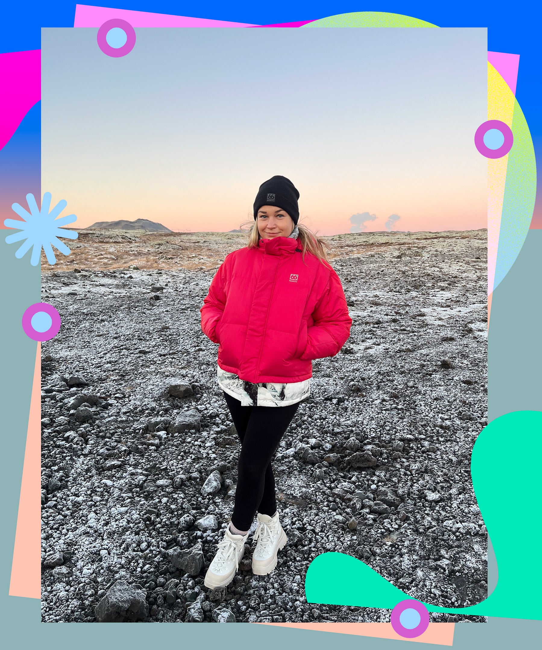 In November 2018, I went to Iceland for the first time. While I was ready for the neon green Northern Lights, hot springs among the snow, and the Reykjavik hotdog stand (no, really) that the trip promised, I was not prepared for the Icelandic winter. As I traversed the ice caves of Langjökull, the second-largest glacier in the country, I discovered that my warmest coat and fleece-lined pants were no match for the subzero temperatures. Yet the locals seemed undisturbed by the chill that surrounds many of the country’s famous (and famously outdoorsy) landmarks. Most of them were also dressed in outerwear marked by a gray square logo that read 66°North.