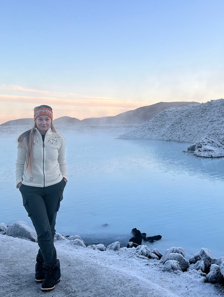 For a trip to the Blue Lagoon, which involves one stripping down to a bathing suit in the cold before entering the hot spring, I opted to wear my one-piece as a bodysuit underneath a traditional Icelandic wool sweater, known for its graphic pattern and heat retention. I made up for the lack of a top shell layer by pairing the look with a pair of water-resistant pants, which came in handy after I emerged from the geothermal waters back into the cold, and a headband that I kept on while soaking in the deliciously warm lagoon.