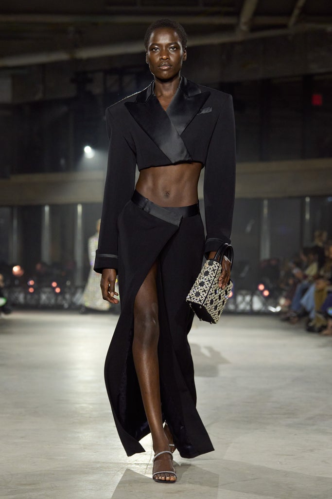 While suiting has undoubtedly been top-of-mind in our current social zeitgeist between the return to office and social events, designers took it one step further by leaning into true tuxedo styling –– with an updated twist. Simkhai showed a slinky maxi skirt and cropped blazer with silk lapels while Brandon Maxwell opted for understated Bermuda shorts styled with a boxy tuxedo jacket.