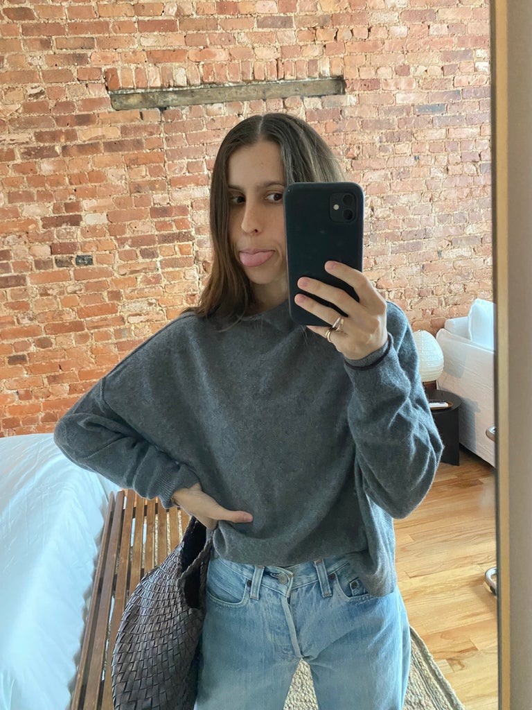 Kate Spencer, who originally hails from Los Angeles and is upping her sweater game in NYC, says of the Alani, “The sweater is kinda thin and lightweight, which I like.” While some cashmere sweaters are often too chunky or insulating for these late-summer/early fall days, the Alani has a very appealing in-between-seasons transitional quality to it — you know, for when the days are still warm but the evenings get chilly.