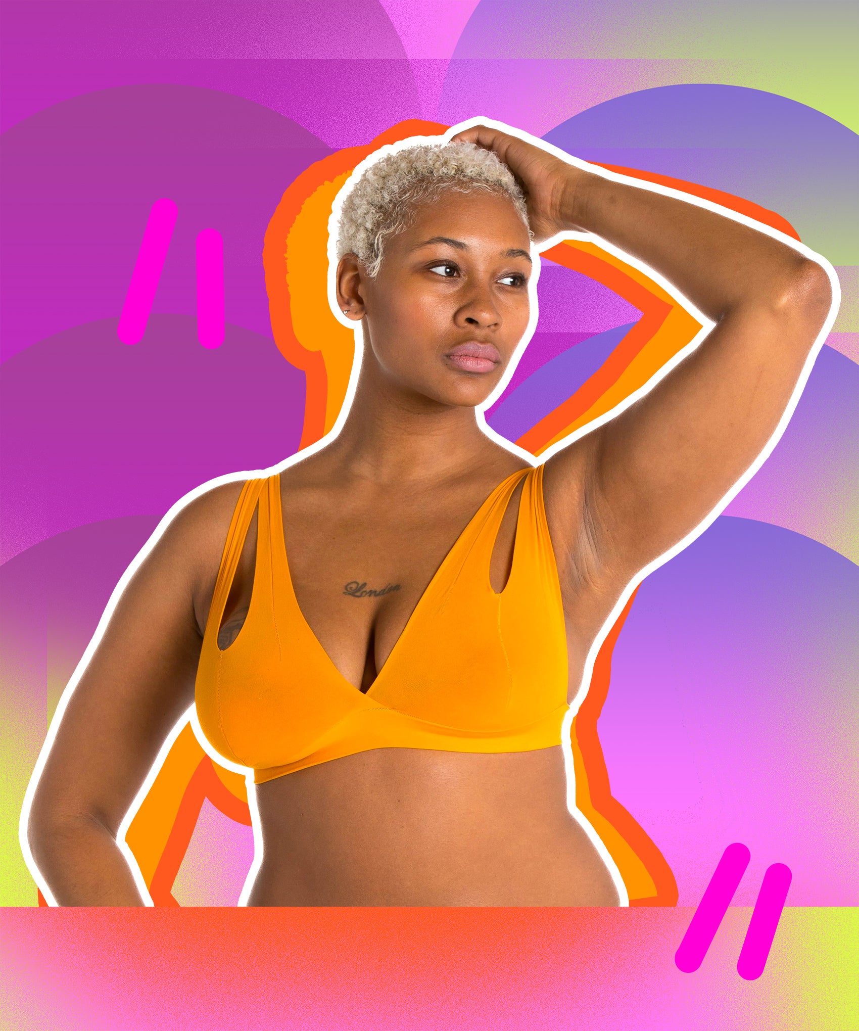 Azan also notes that bras, in general, are also not very size inclusive nor are they made for diverse chest shapes. For example, folks with two different cup sizes have generally been out of luck, defaulting to bras that simply don’t fit. As another example, people with bigger busts have always been conditioned to think they need bras that “support,” often with padding or uncomfortable underwires that don’t actually cradle the juggulars in a natural or sufficient way.